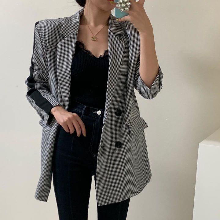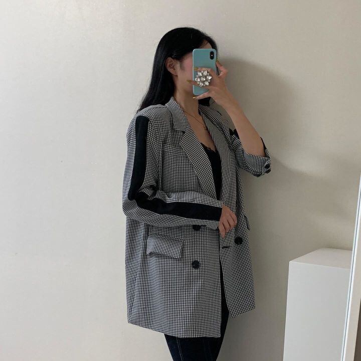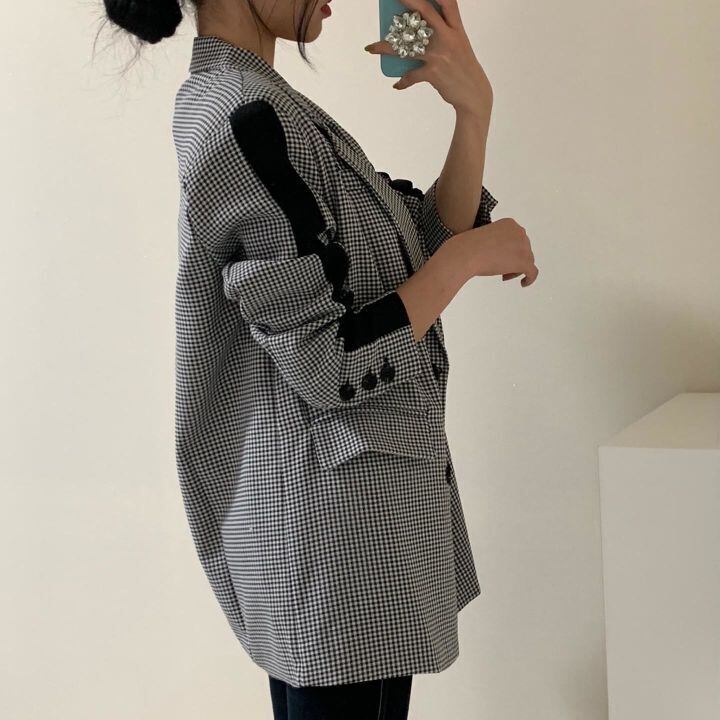 ブラックホワイトジャケット オータムスタイルルーズカジュアルショート 秋物 ICC_レディース9185928094