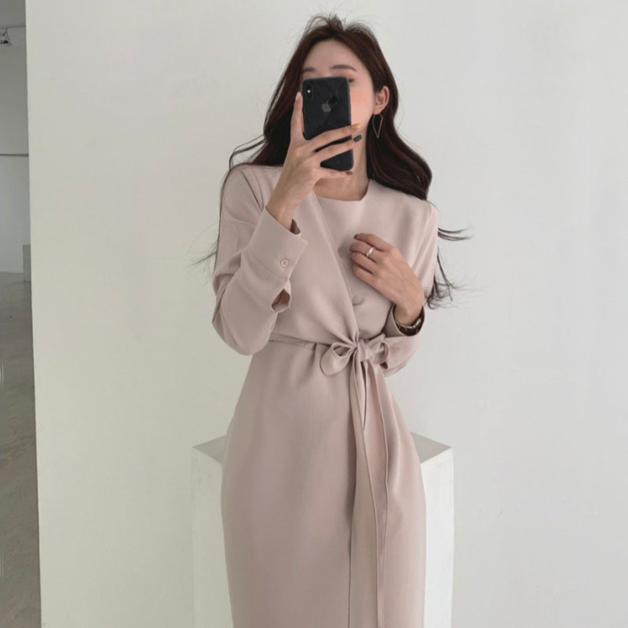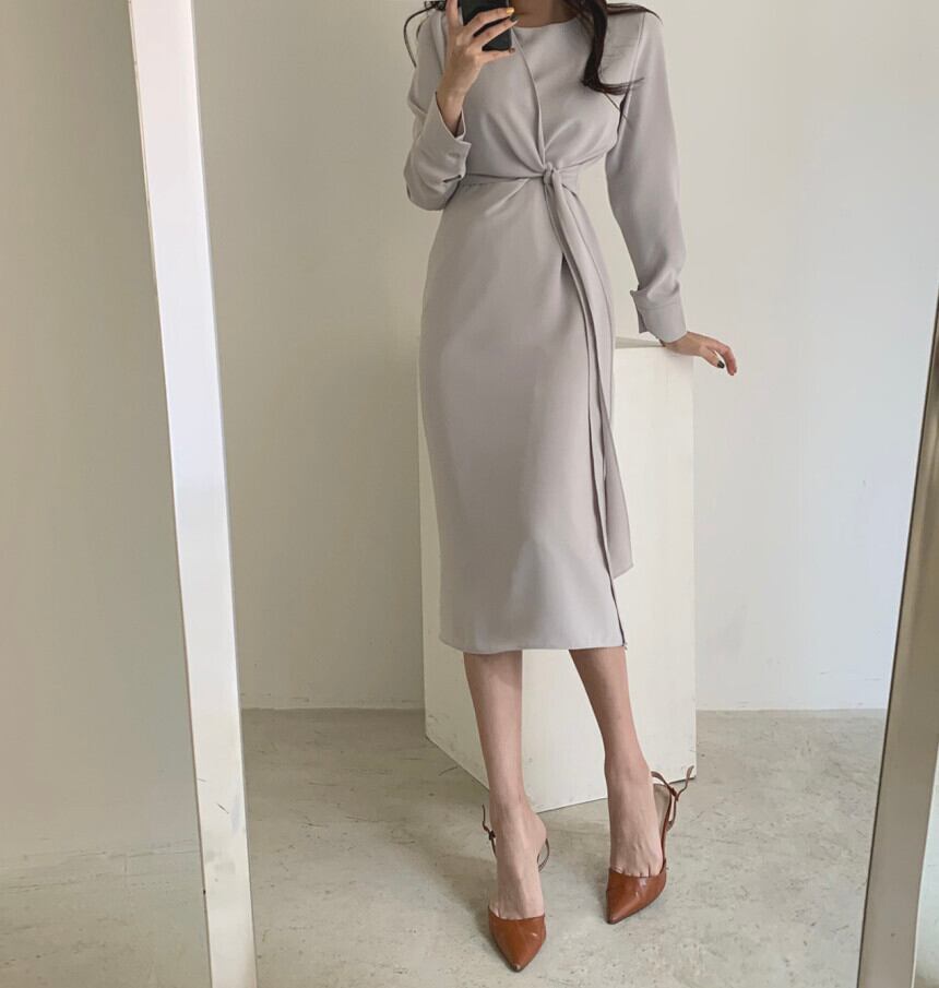 オータムスタンダードスタイルウェストリボン長袖スリーブシャツ ドレス レディース ロング レトロ 秋物 ICC_レディース41310963960