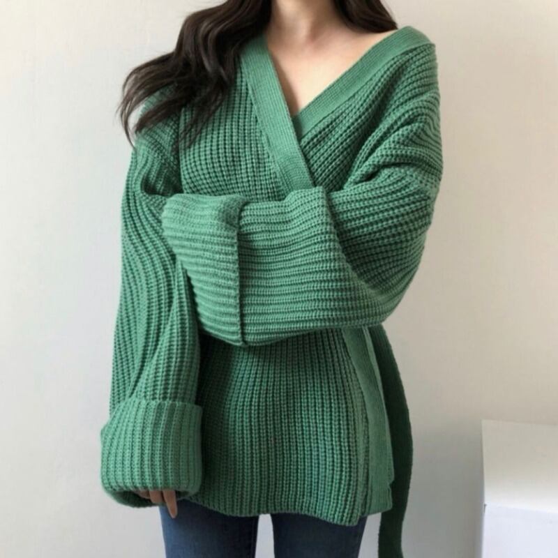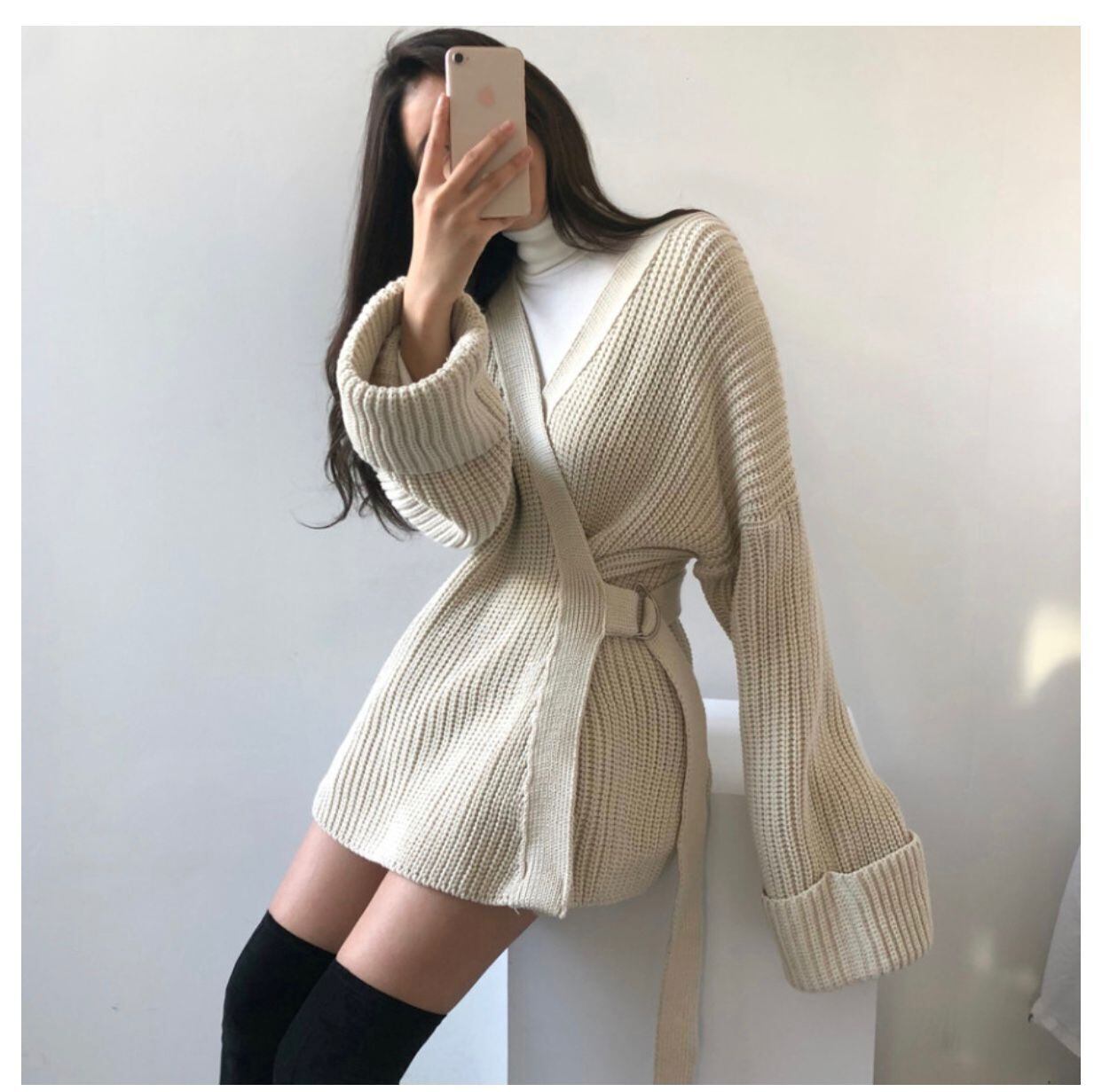 Vネックカーディガンジャケット ニットルーズセーター オータム 秋物 ICC_レディース74840527558