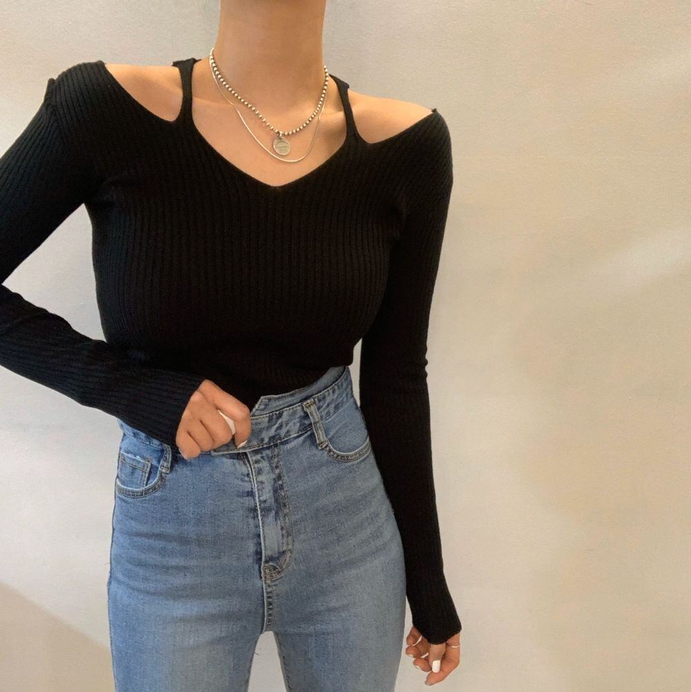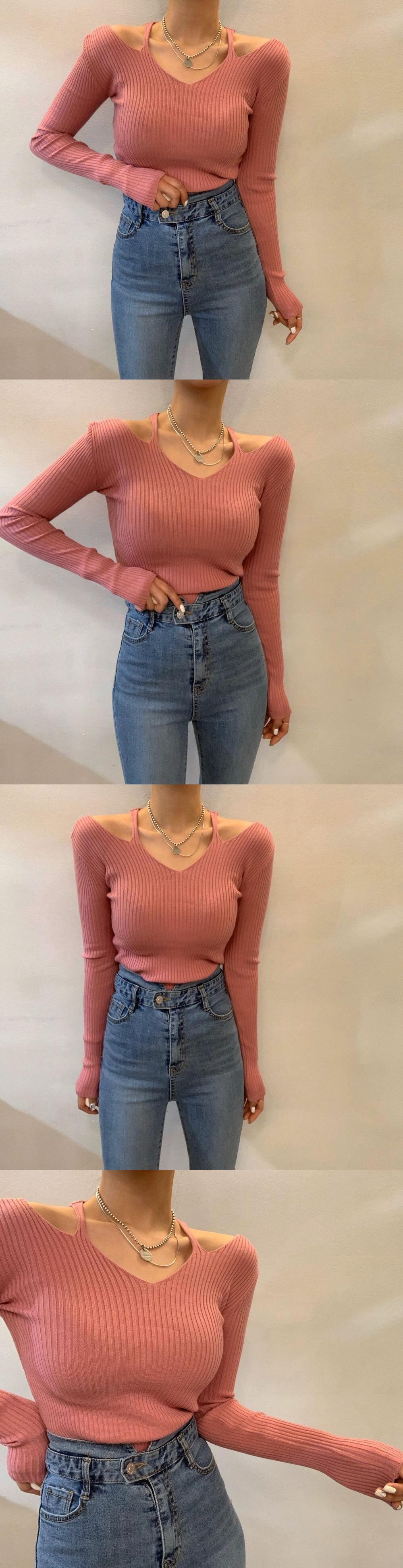 Vネックニットシャツ ロング オフショルダー ICC_レディース70843288044