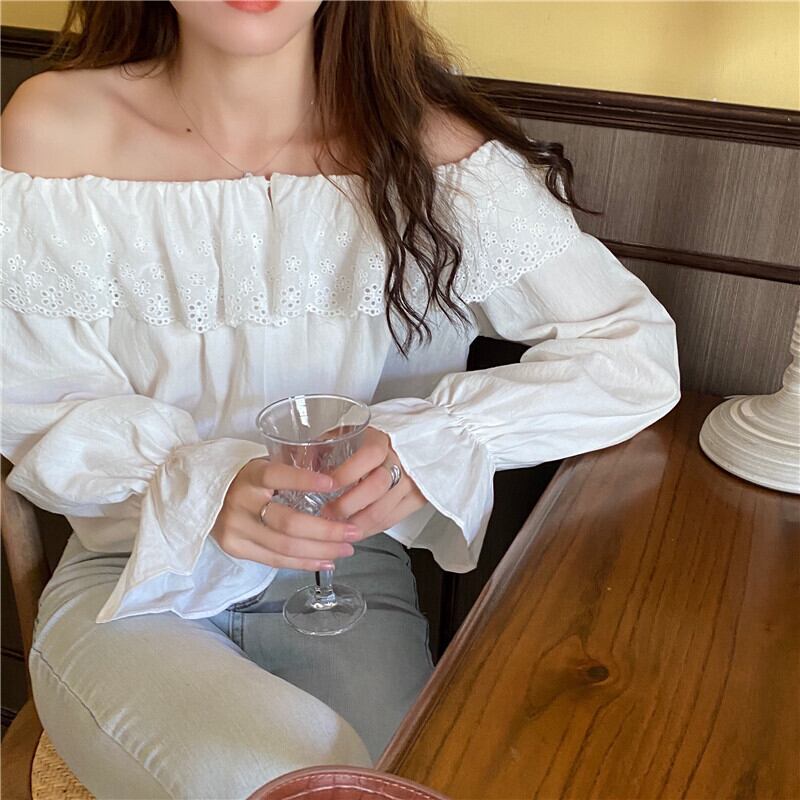 オータムホワイトシャツ レース 大人ガーリー スウィート キュート カジュアル 秋物 左左右右21476310208