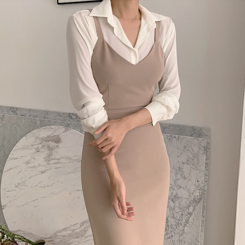 オータムウィンタースタンダードソリッド カラードレス スリムスタイルレディース レトロ 秋物 冬物 ソリッドカラー 左左右右72517732661