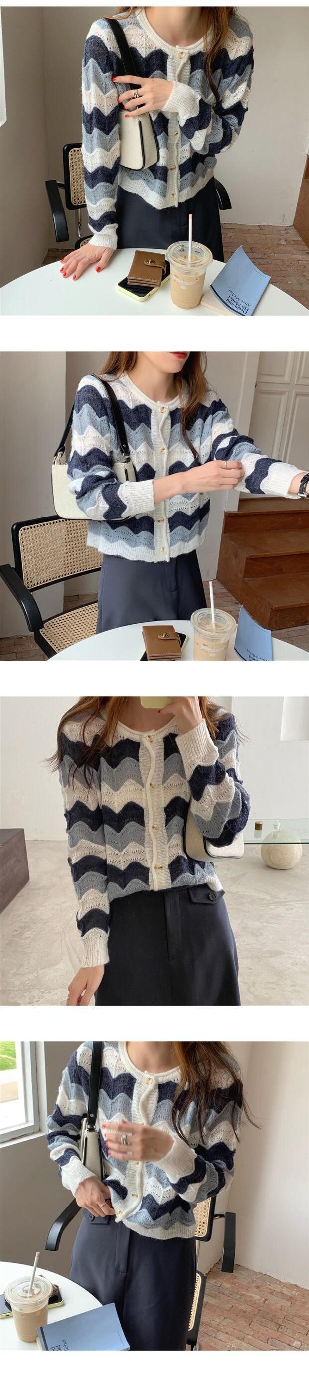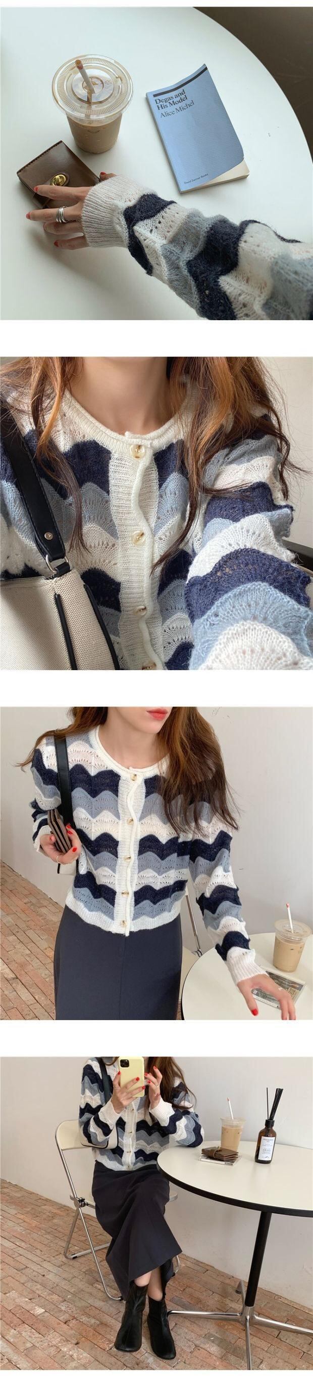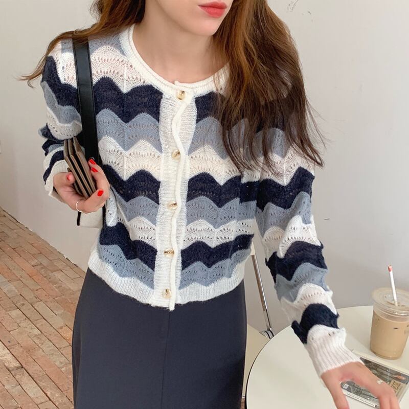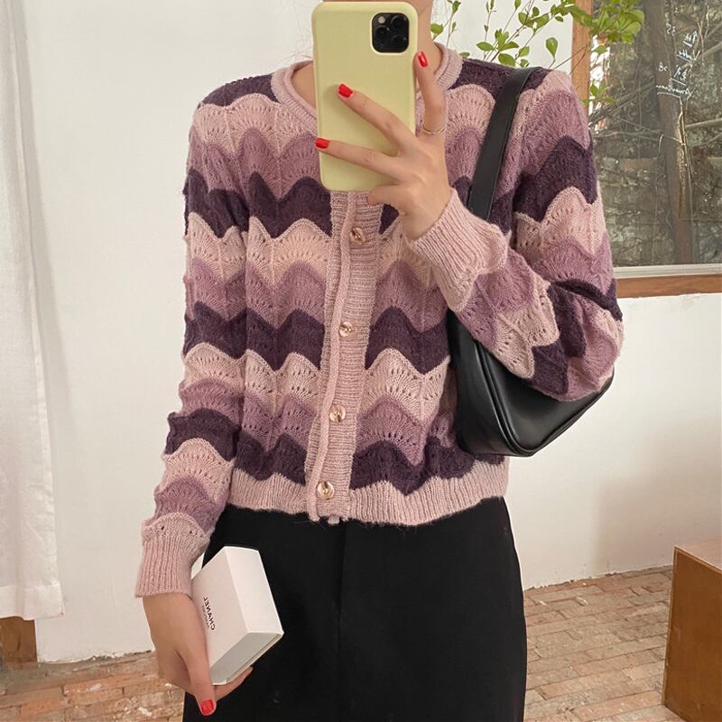 トップス カーディガンラウンドネックストライプスタンダードニットセーター レトロ 大人ガーリー スウィート キュート カジュアル Oネック 左左右右97748979916
