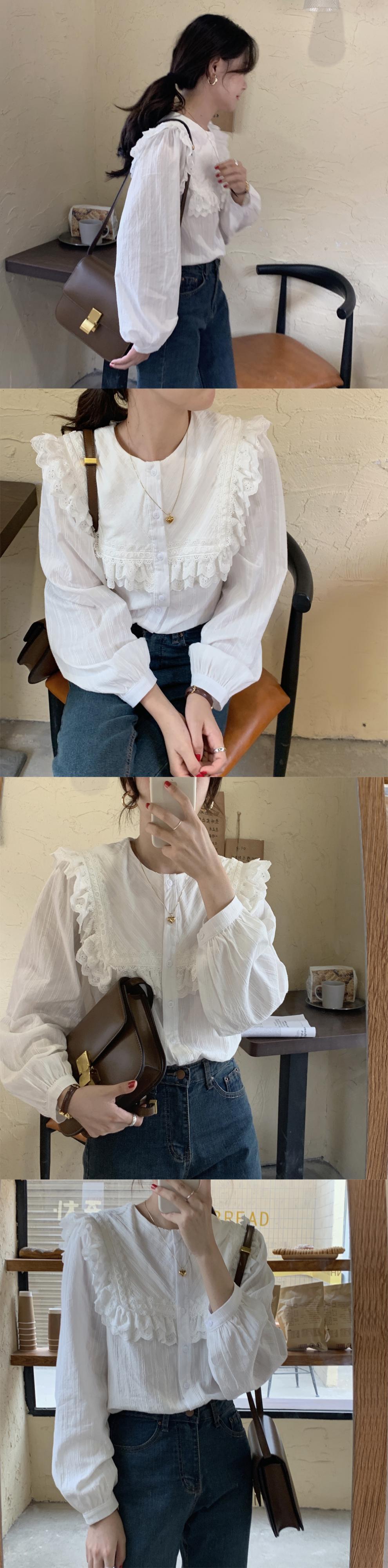 レースシャツ ホワイトオータムスタンダード ロング レトロ 大人ガーリー スウィート キュート カジュアル 秋物 ICC_レディース49650396717