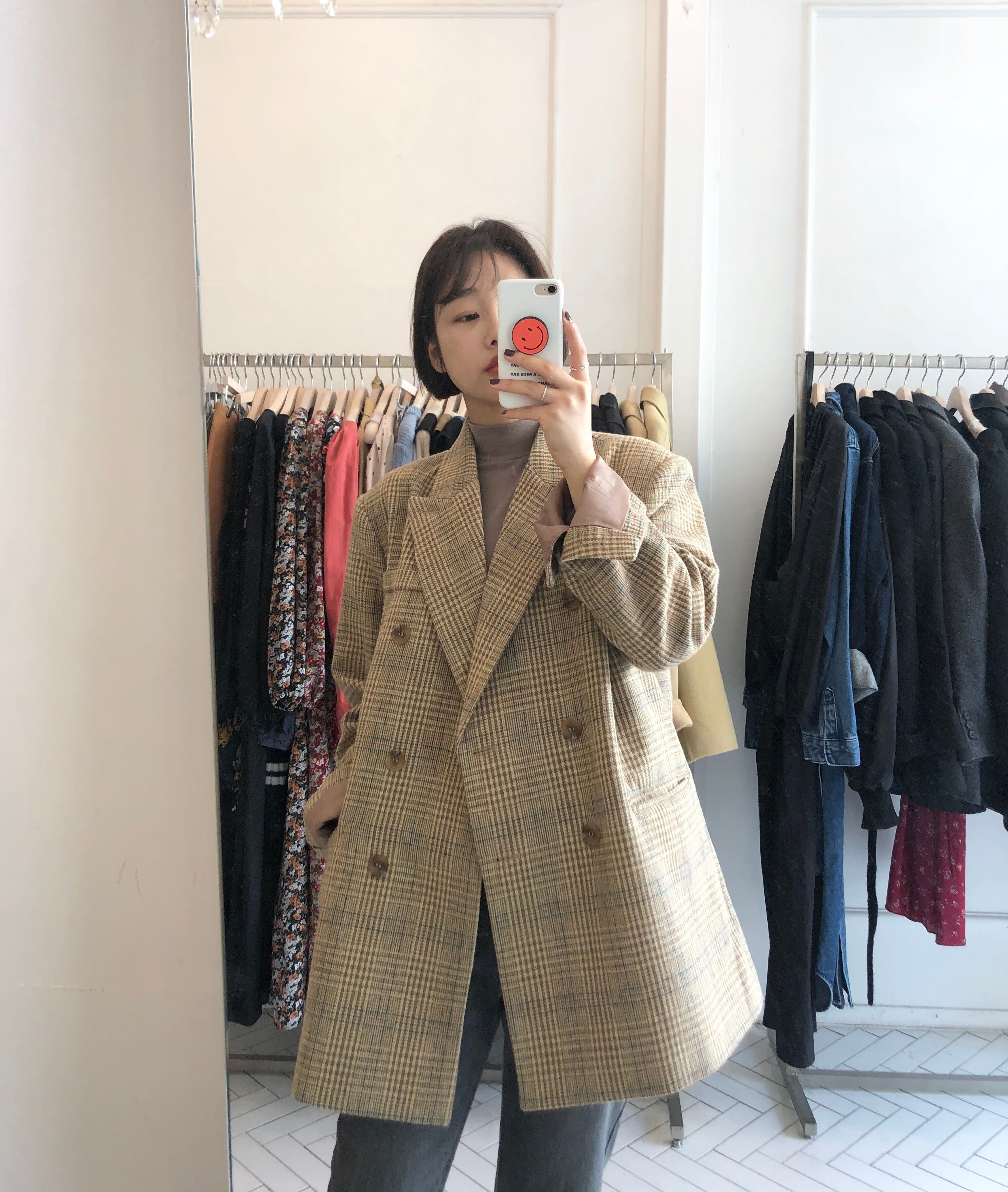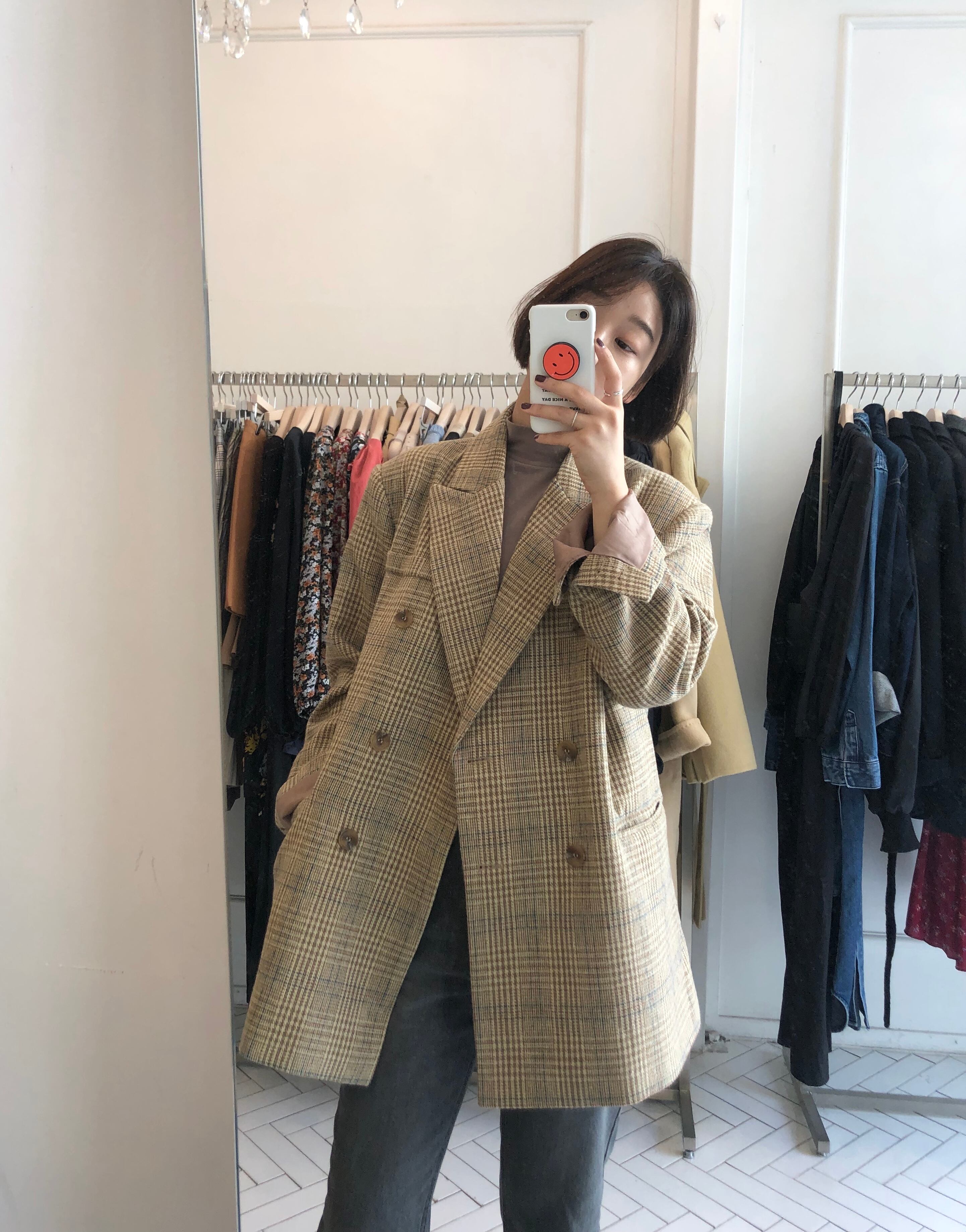 オータムスタイルスタンダード格子柄カラールーズ長袖スリーブコート レディース ロング レトロ 秋物 ICC_レディース24291027714
