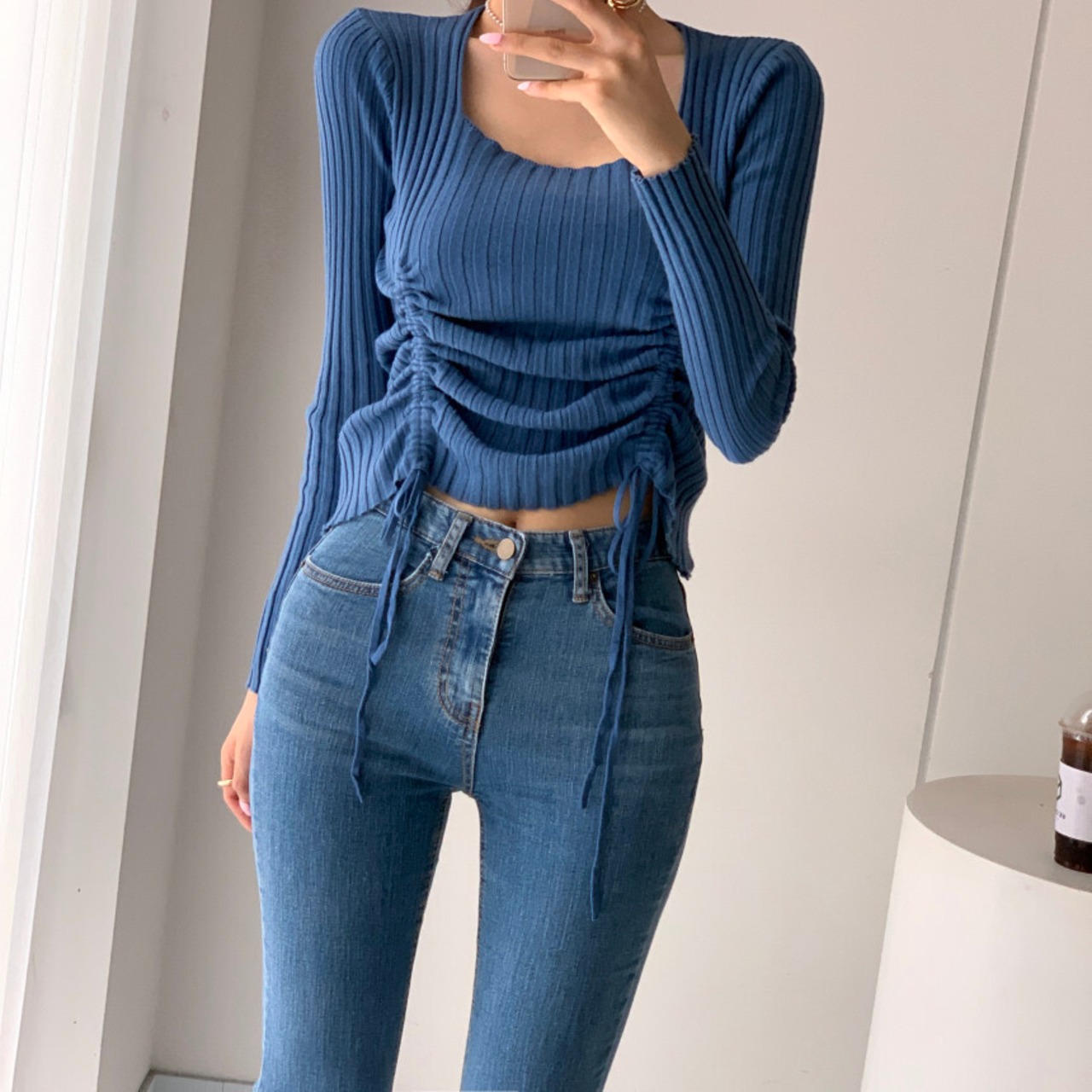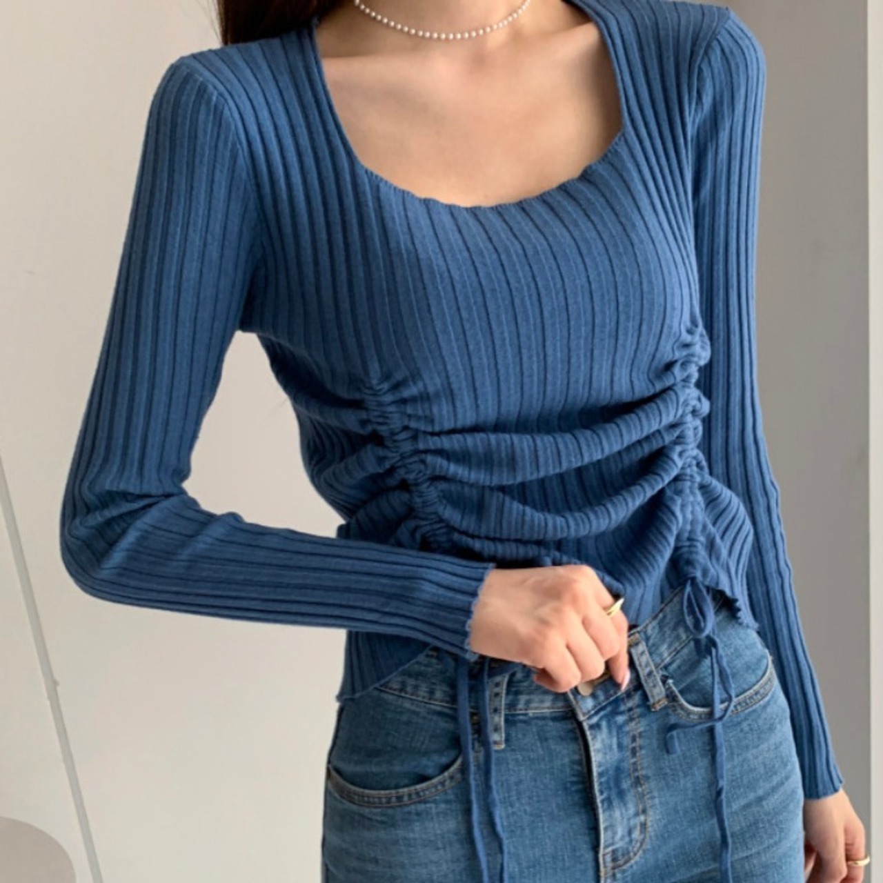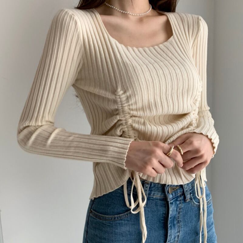 ニット オータムスタンダードギャザースリムトップス セーター レトロ 秋物 スクウェア ICC_レディース42886554270