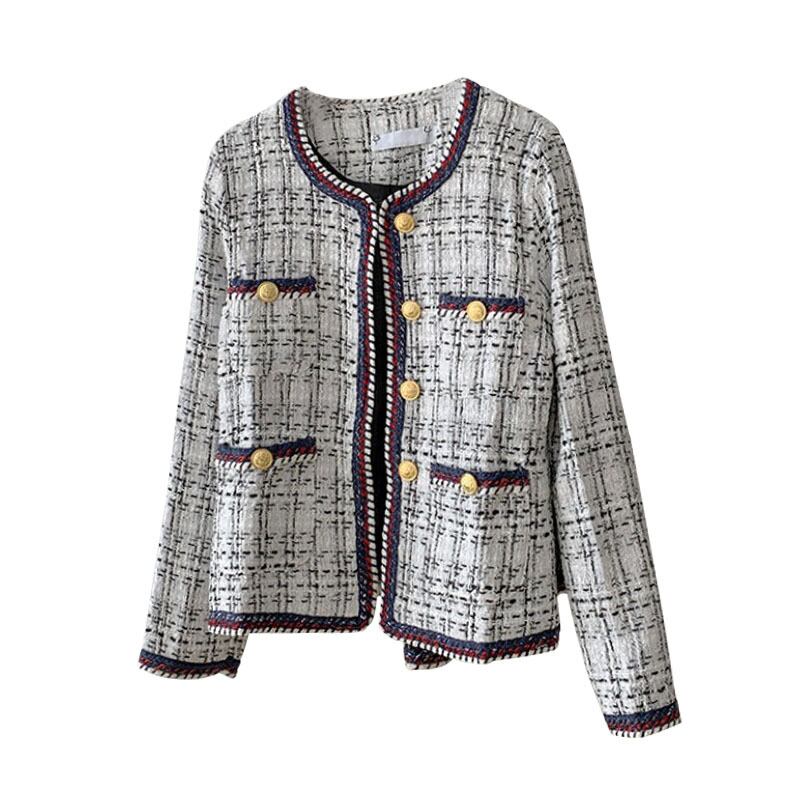 ジャケット オータムウィンタースタンダード薄手ツィードトップス ロング レトロ 秋物 冬物 ICC_レディース19078473298
