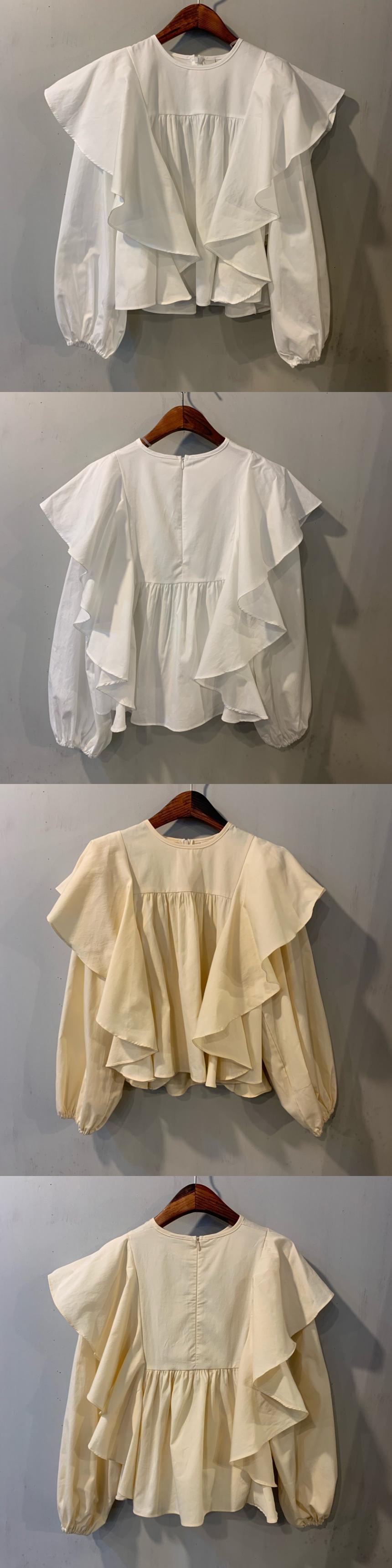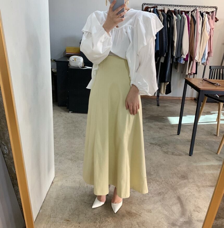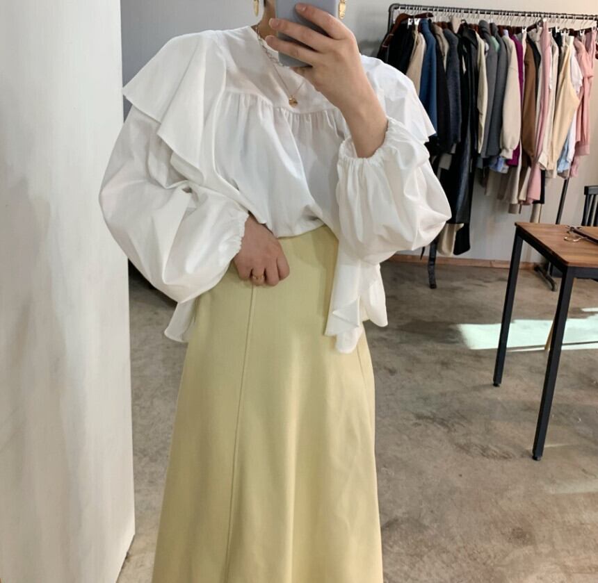 スタイルラッフルルーズスリーブシャツ ハイウェストウェストスカート ロング ランタンスリーブ ステッチ ICC_レディース37424607726