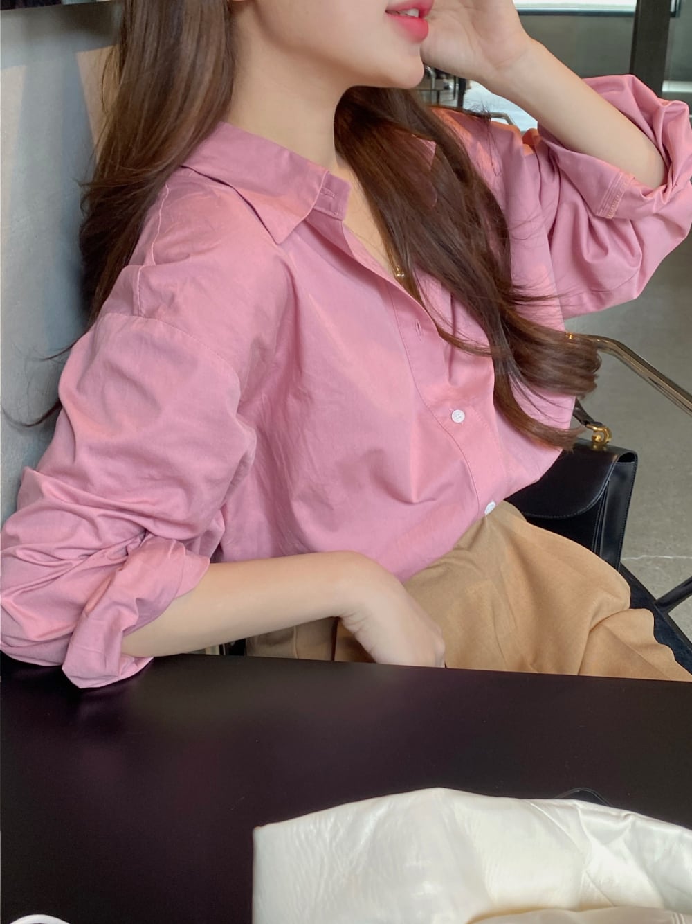 ホワイトルーズカジュアル薄手シャツ トップス レディース ロング ピンク ICC_レディース75648653770