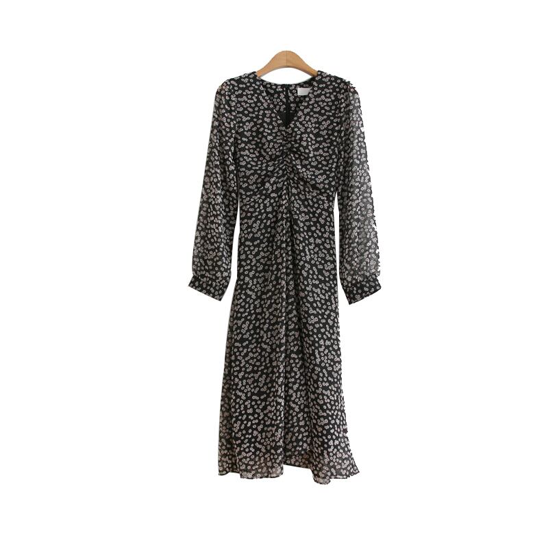 オータムスカート ウェストVネックプリーツシフォンフローラルドレス 秋物 花柄 左左右右91359165070