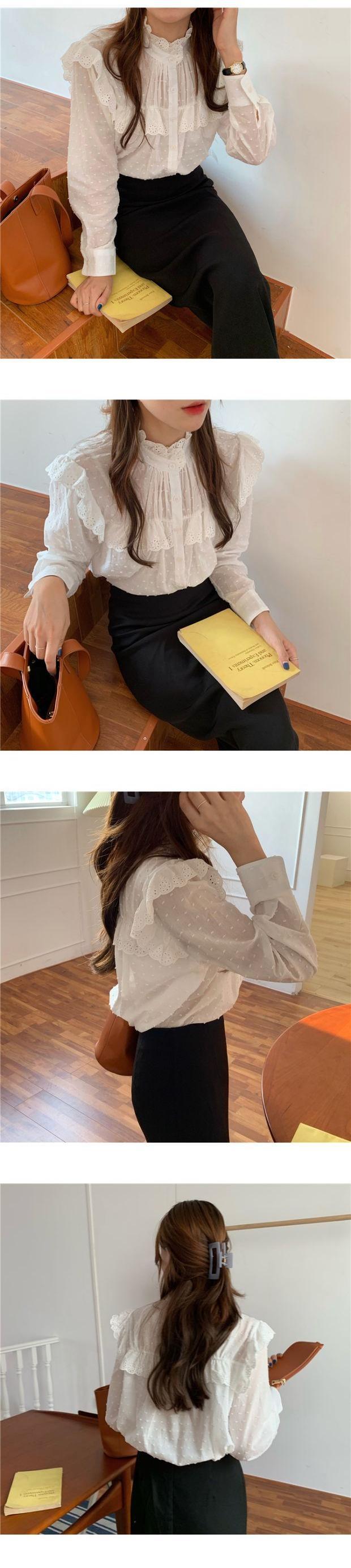 オータムスタンダードレーススタイルホワイトシャツ レディース ロング レトロ 大人ガーリー スウィート キュート カジュアル 秋物 左左右右17647042292