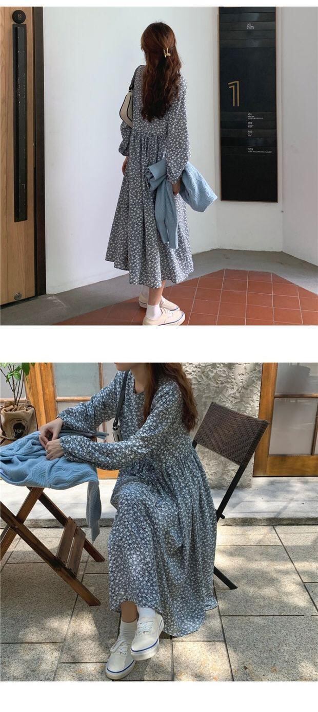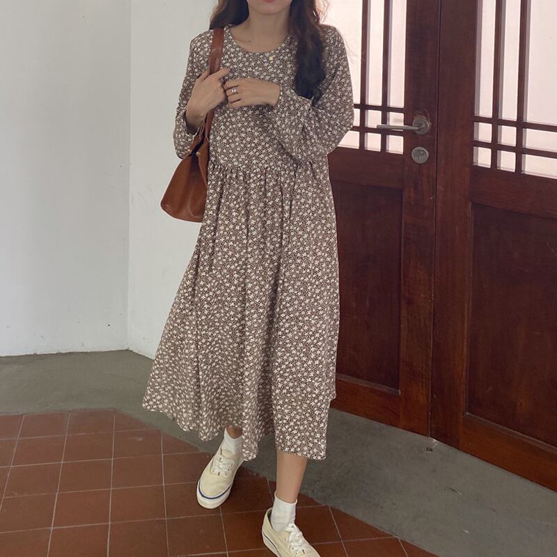オータムロングスカート ルーズスタンダードフローラルドレス レトロ 大人ガーリー スウィート キュート カジュアル 秋物 花柄 左左右右69953537693