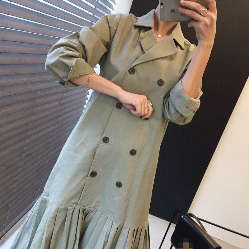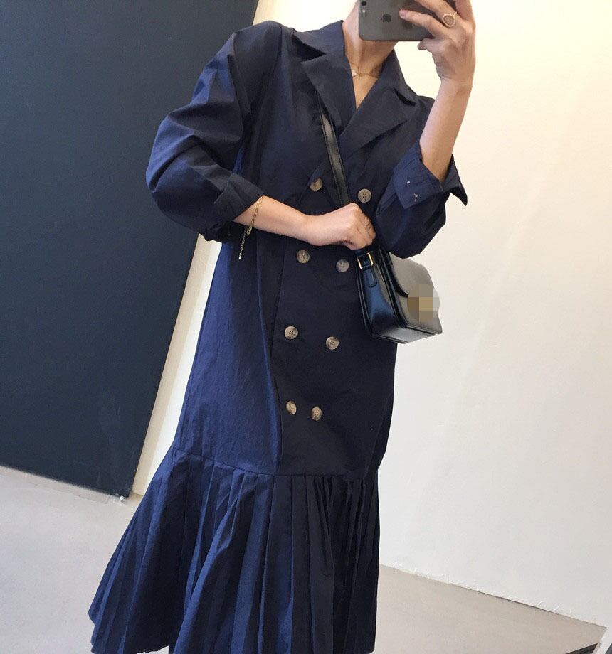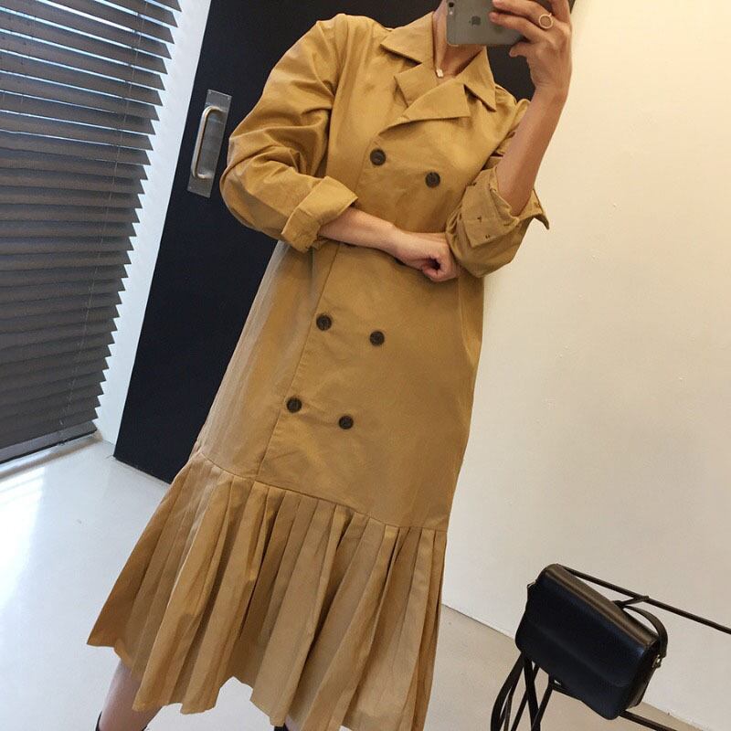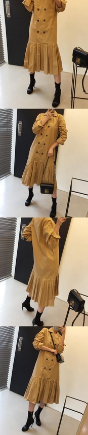 オータムカラーダブルブレスト薄手プリーツロングドレス エレガント 秋物 ICC_レディース68944840765
