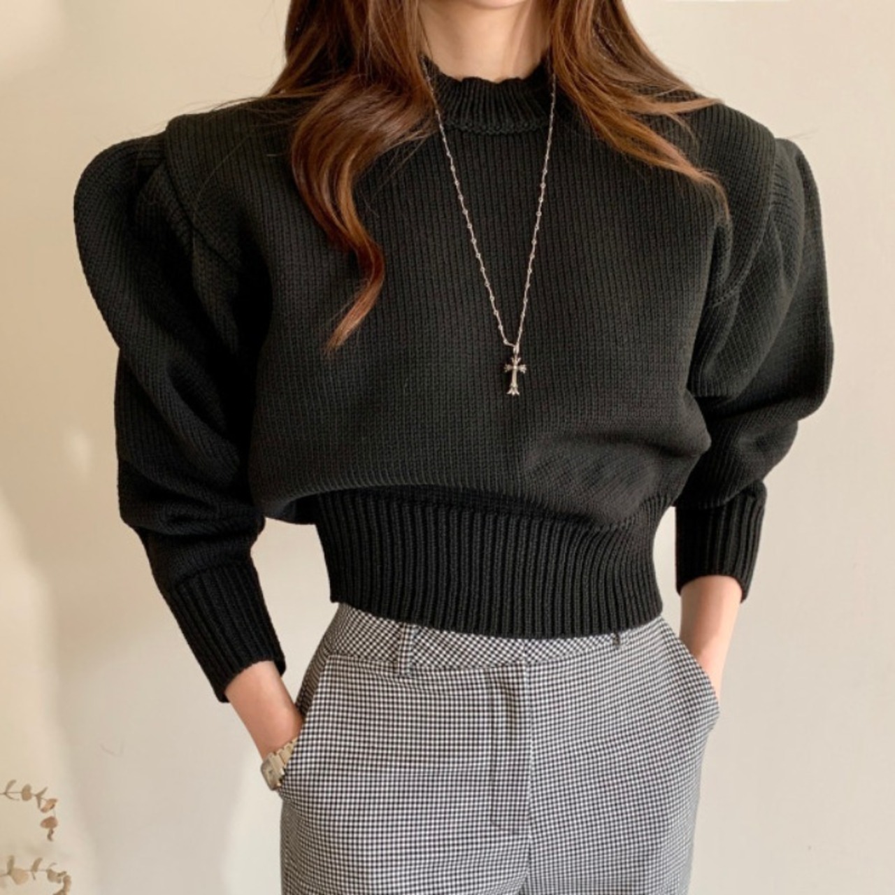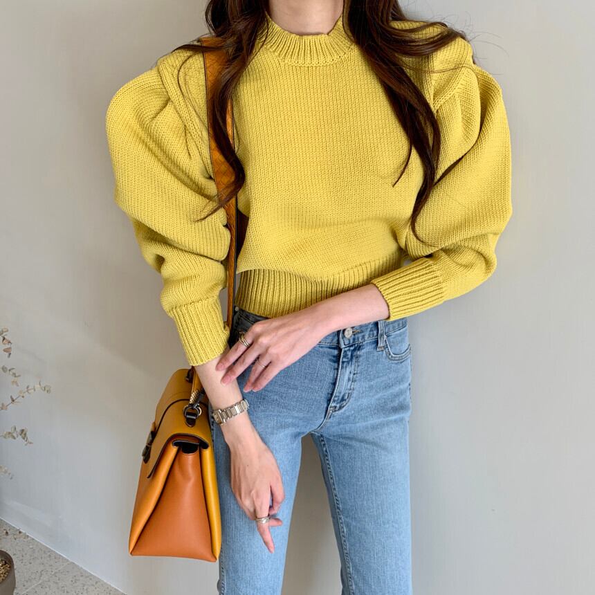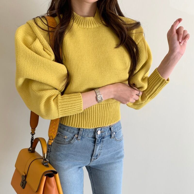 カラースリーブラウンドネックプルオーバー セーター Oネック ICC_レディース53592732244