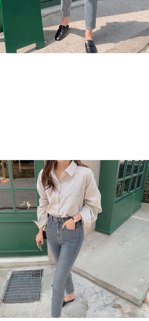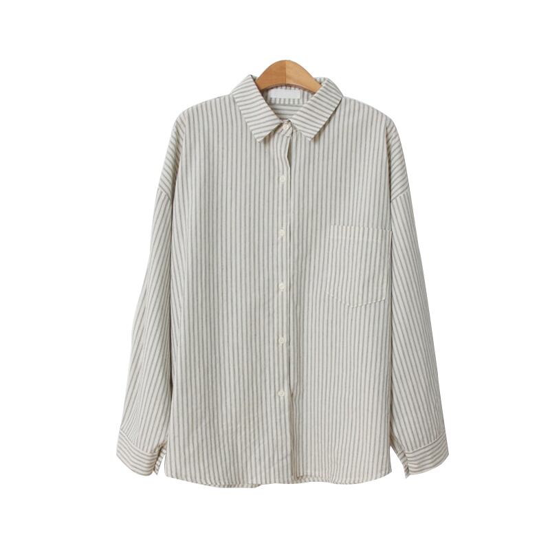 オータムスタンダードトップス シャツ カラールーズストライプレディース ロング レトロ 秋物 左左右右81271302981