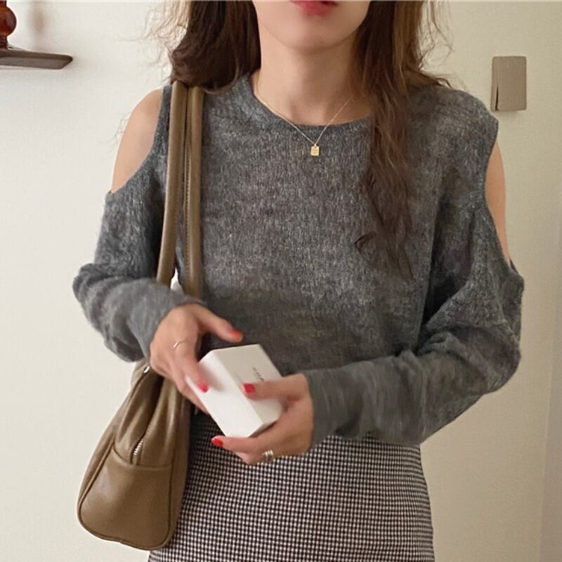 ストラップレスプルオーバー ラウンドネック長袖スリーブセーター ロング Oネック ICC_レディース30848072218