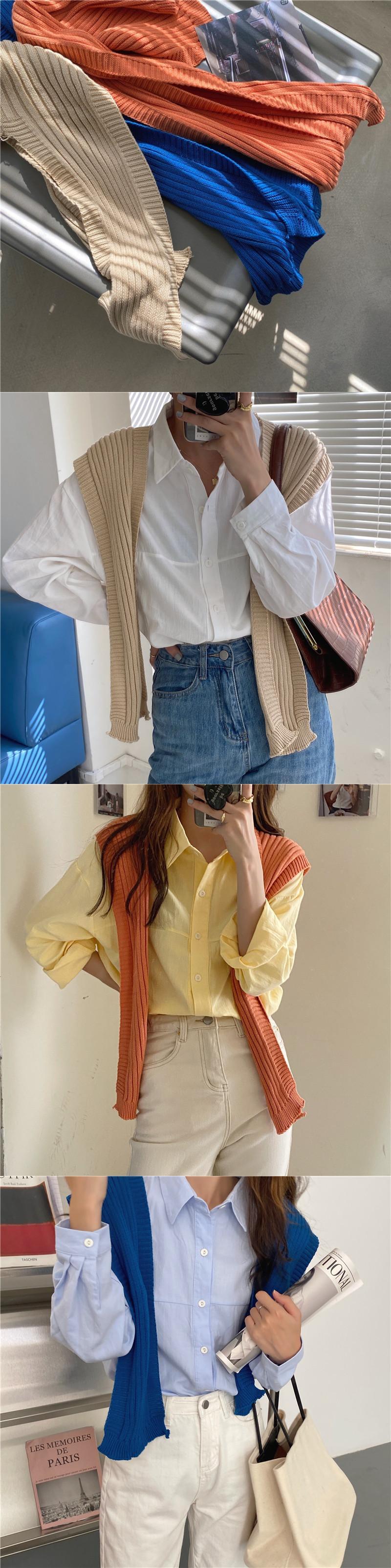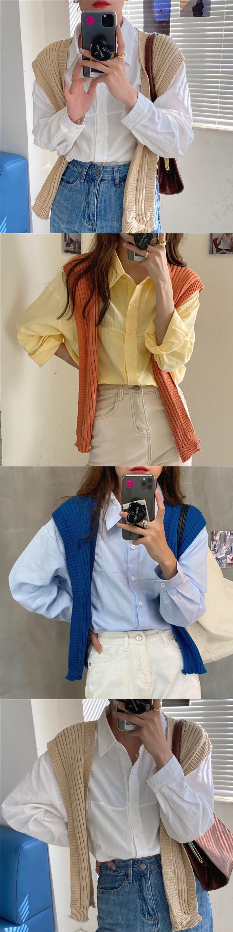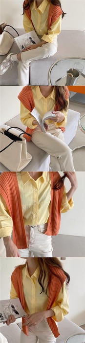 色:白のシャツ,黄色のシャツ,青いシャツ,あんずショール,青いショール,オレンジのショール
