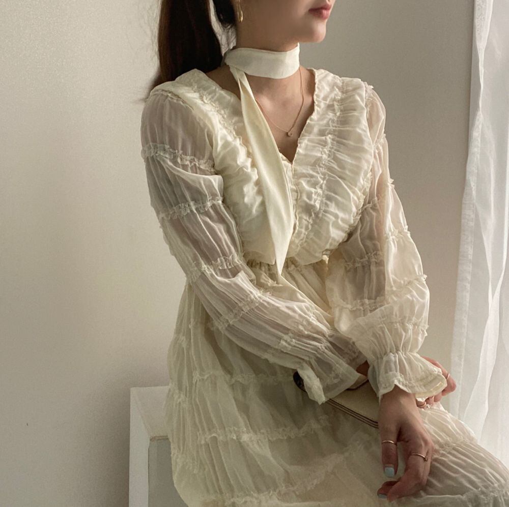 Vネックラッフルドレス ICC_レディース39147320716