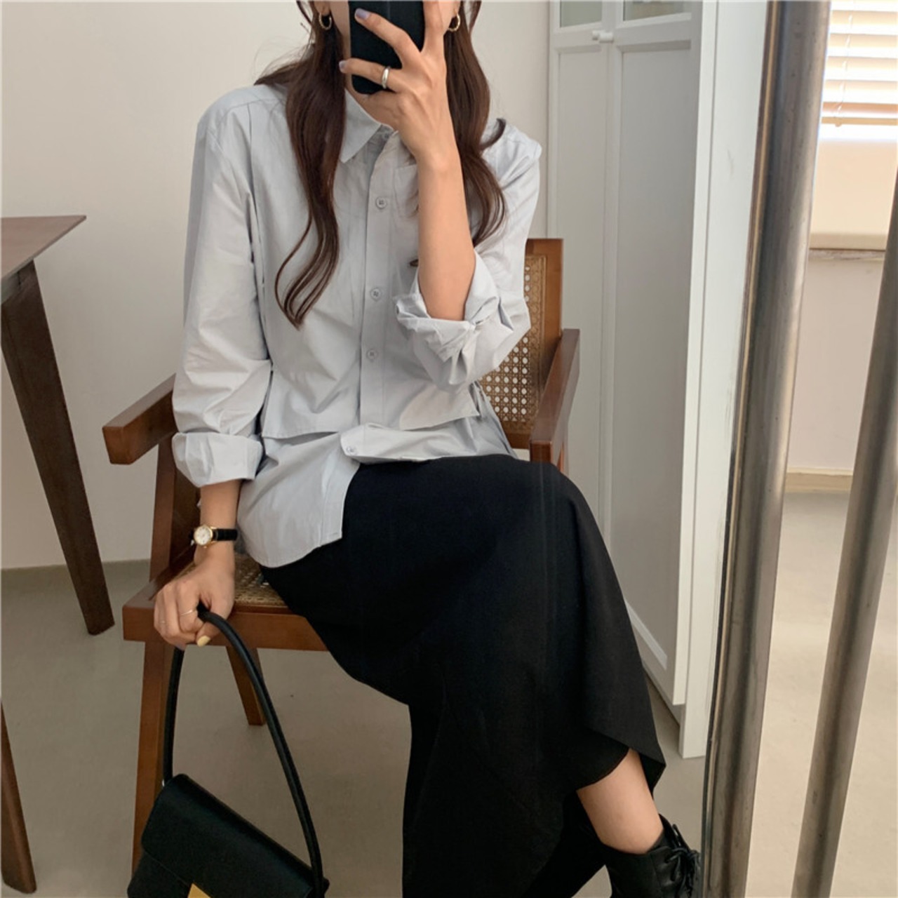 ミニマリストソリッド カラーシャツ ロング ソリッドカラー ICC_レディース50148595952
