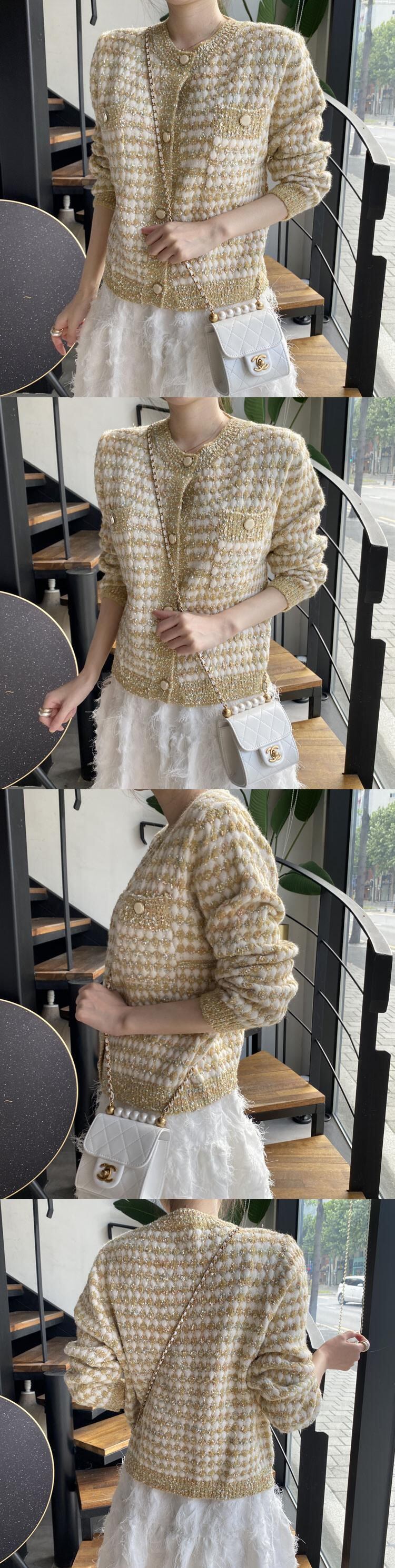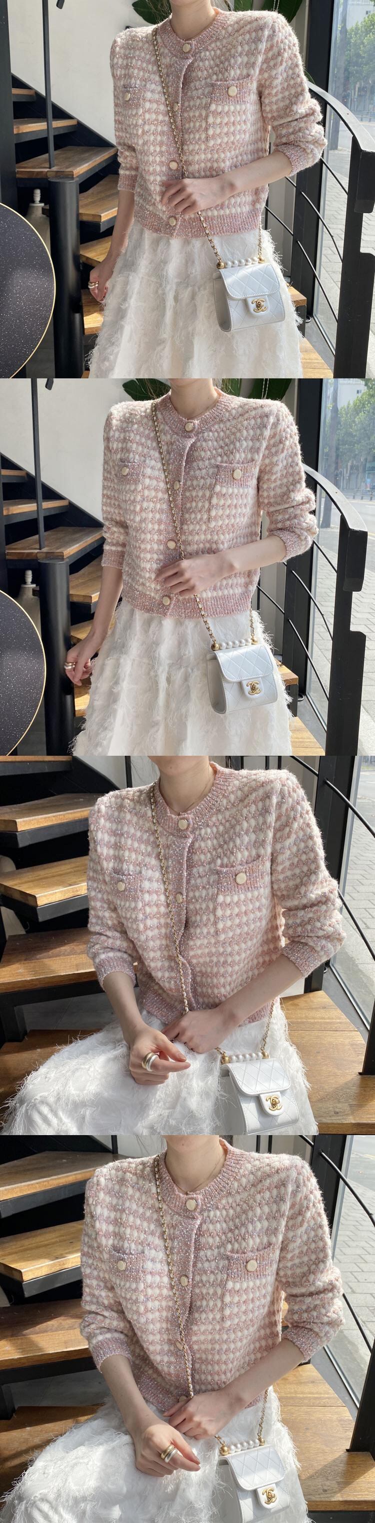 ニットカーディガンスタンダードラウンドネックショートセーター コート レトロ Oネック ICC_レディース70613713433