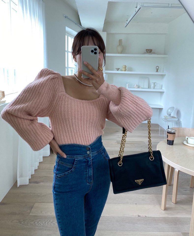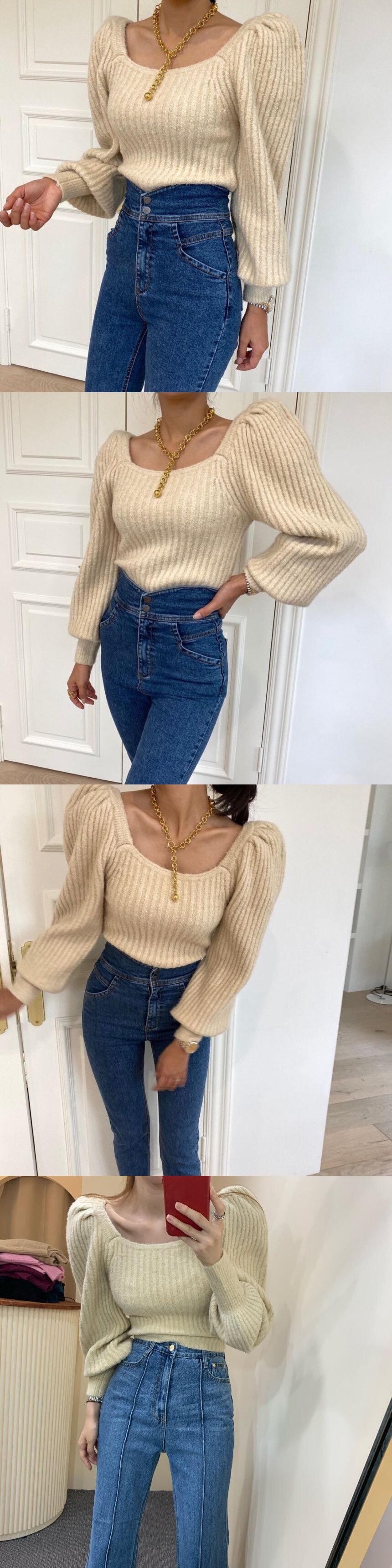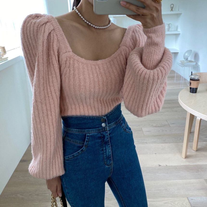 オータムウィンタースタイルカラーショートスリムスリーブプルオーバー セーター トップス レディース 秋物 冬物 スクウェア ICC_レディース19619921923