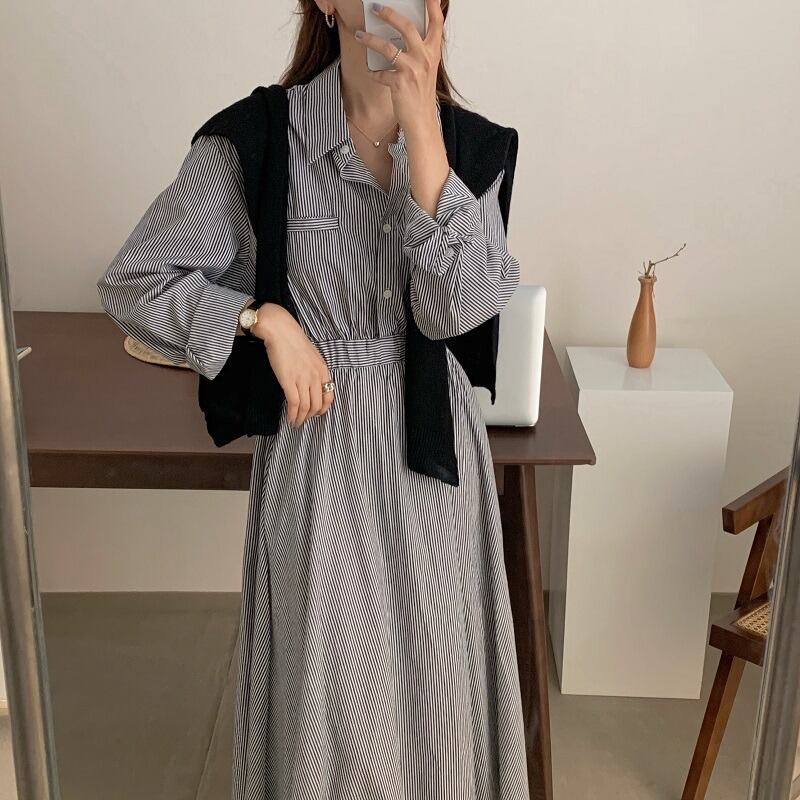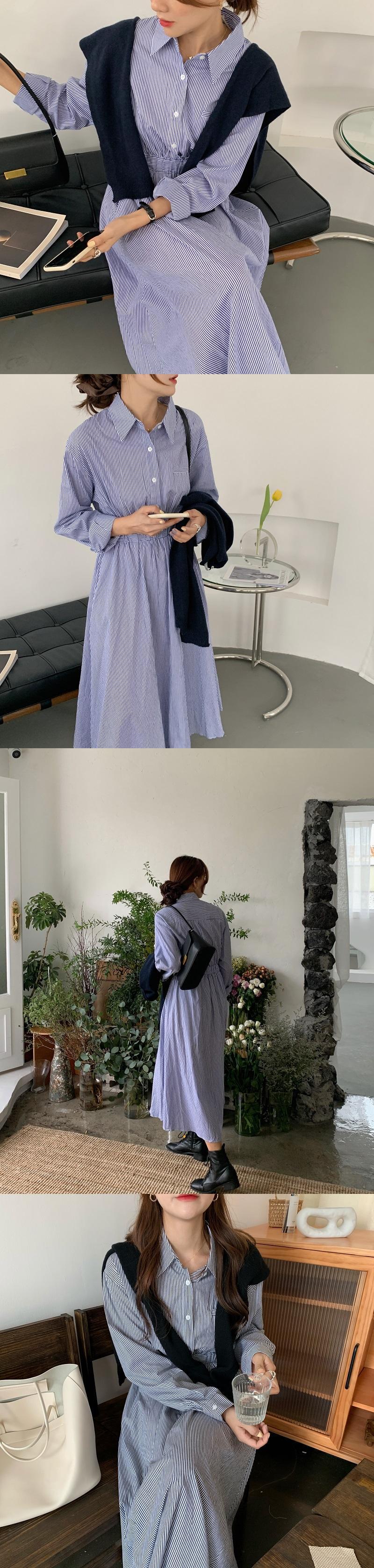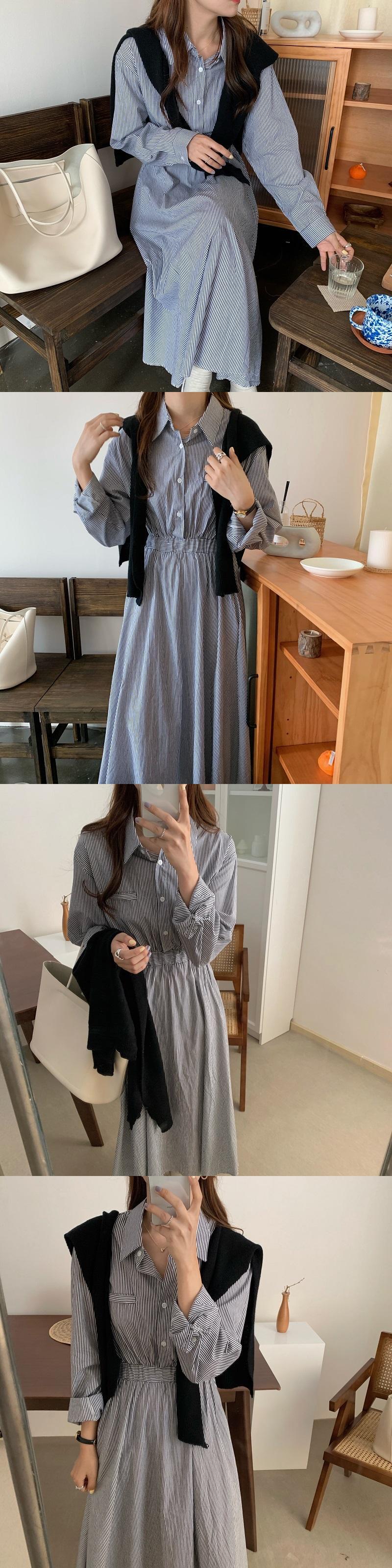 ストライプハイウェストウェストシャツ ドレス スタイルニット ICC_レディース77523020871