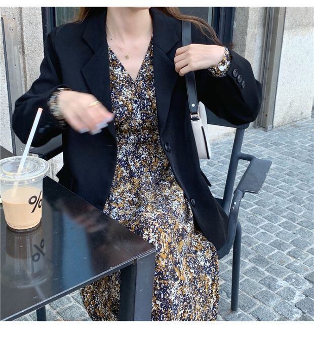 オータムウィンタースタンダードジャケット ブラックカジュアルレディース レトロ 秋物 冬物 左左右右46402137863