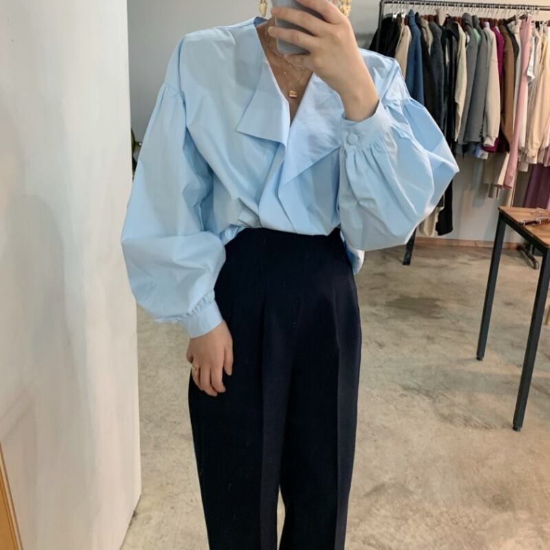 オータムルーズ薄手シャツ スタンダードハイウェストウェスト ロング レトロ 秋物 ICC_レディース60510404158