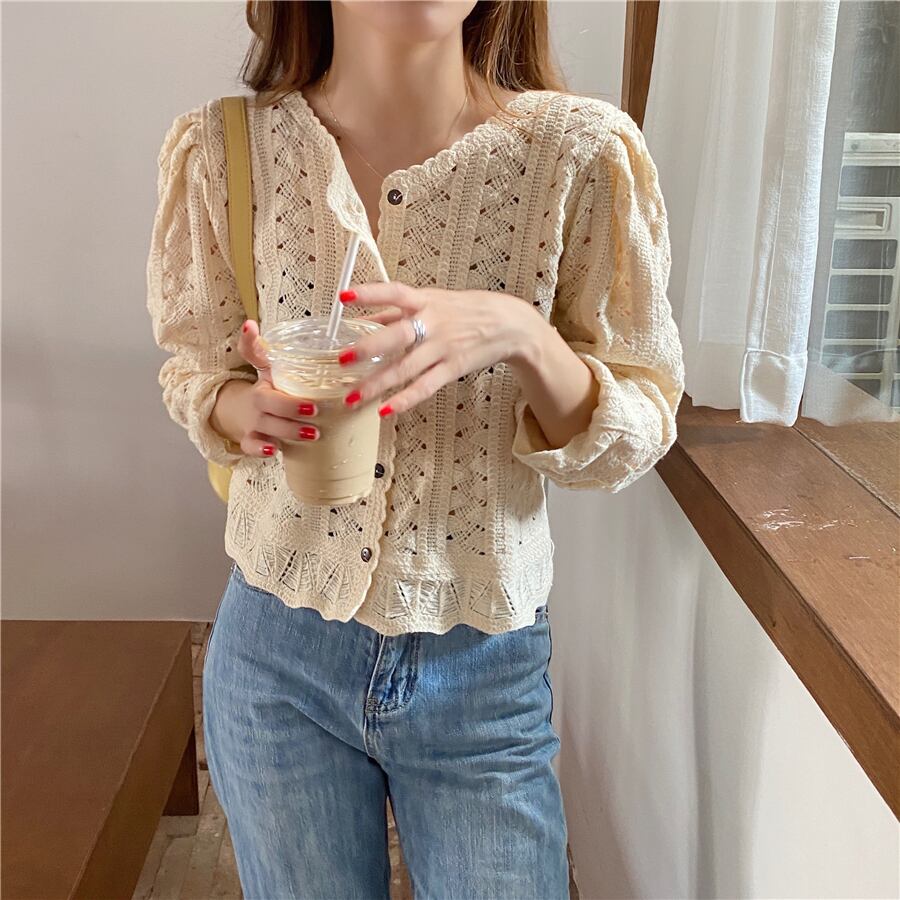 ベージュショートニットセーター カーディガントップス オータム 秋物 ICC_レディース56474787665