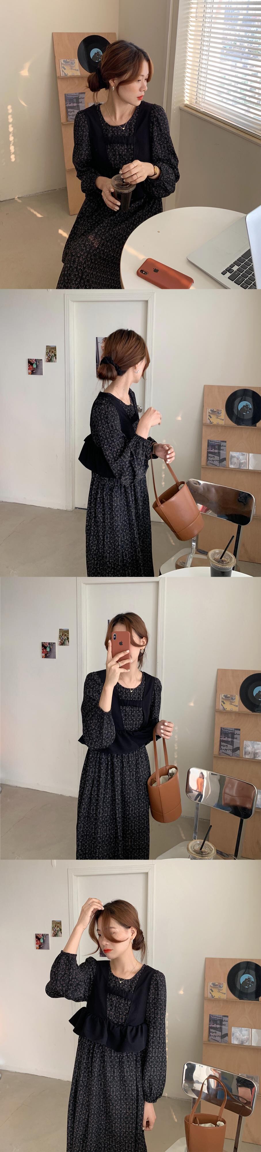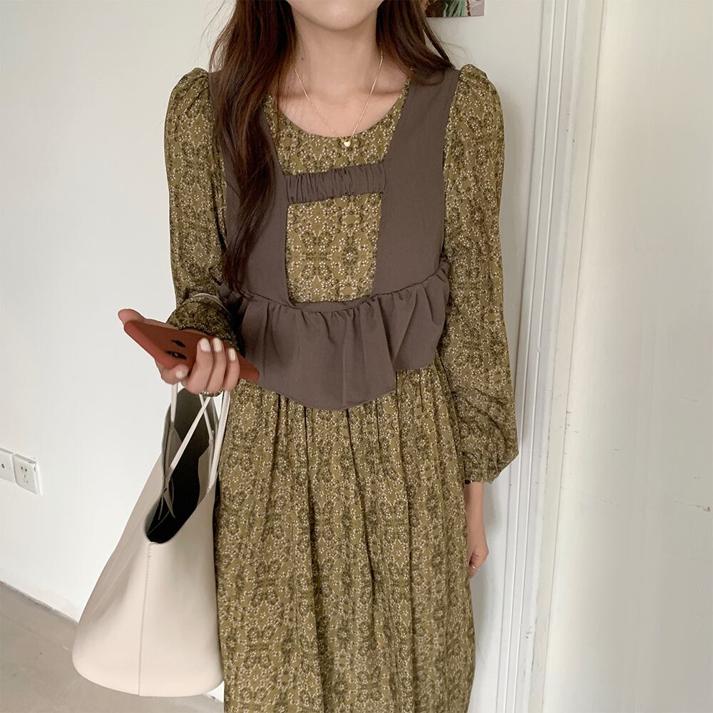 フローラルラウンドネックルーズドレス バックウェスト ロング 花柄 Oネック ICC_レディース20952310073
