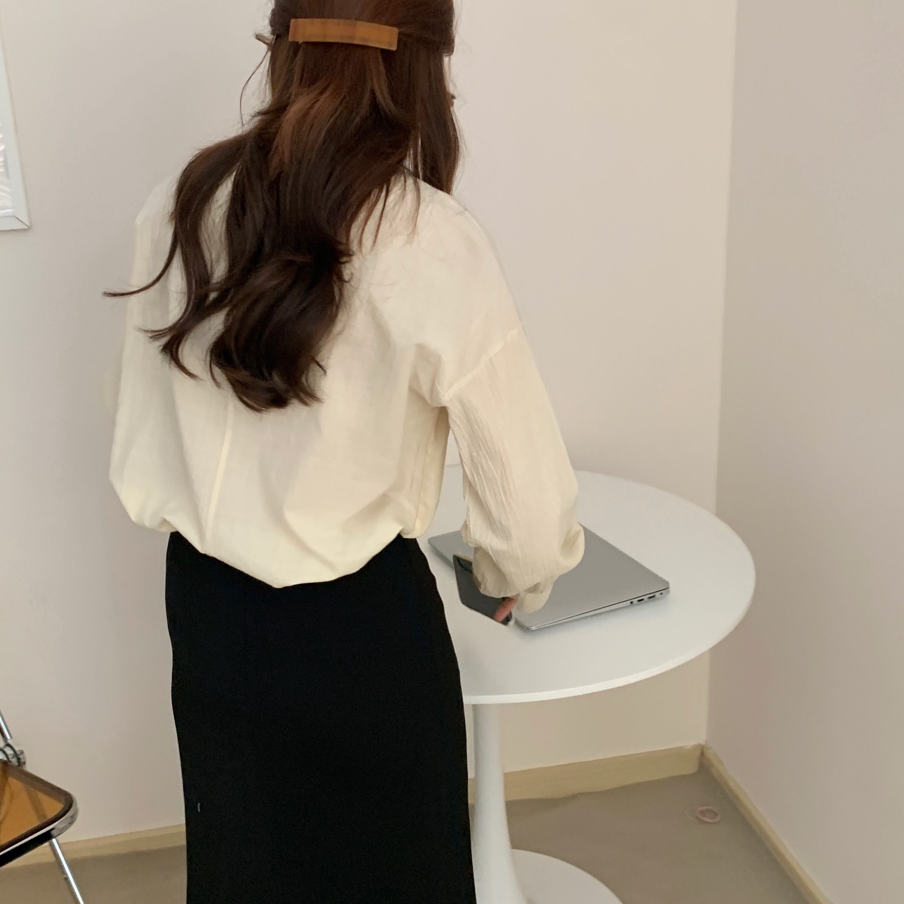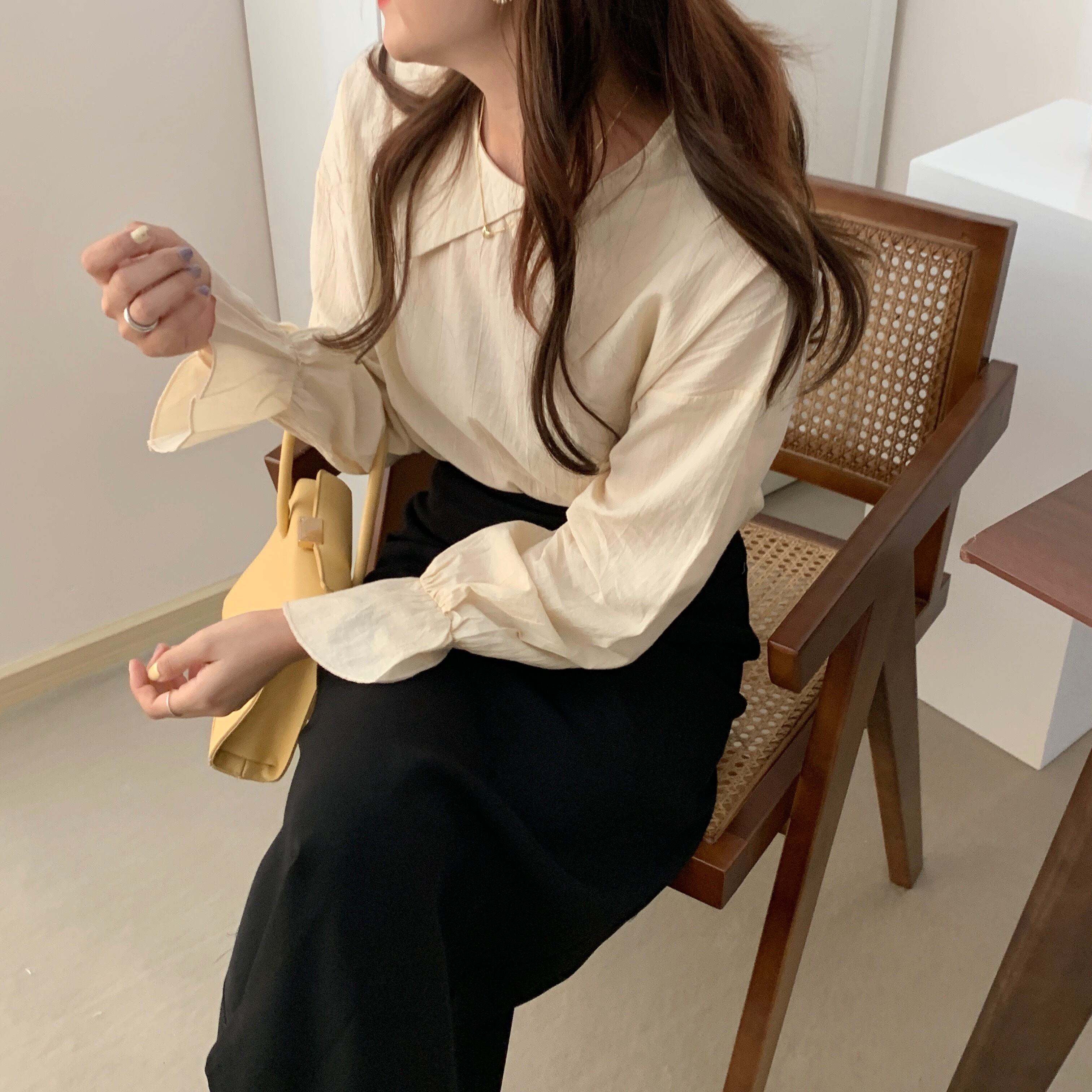 オータムスタンダードルーズ長袖スリーブシャツ カラースタイルトップス レディース ロング レトロ 秋物 ICC_レディース33259461464