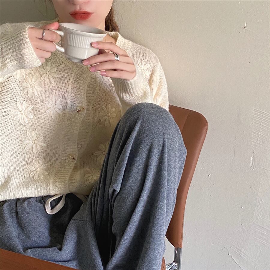 オータム刺繍ニットカーディガンセーター ジャケット レディース ロング 大人ガーリー スウィート キュート カジュアル 秋物 フラワーデザイン ICC_レディース21716012921