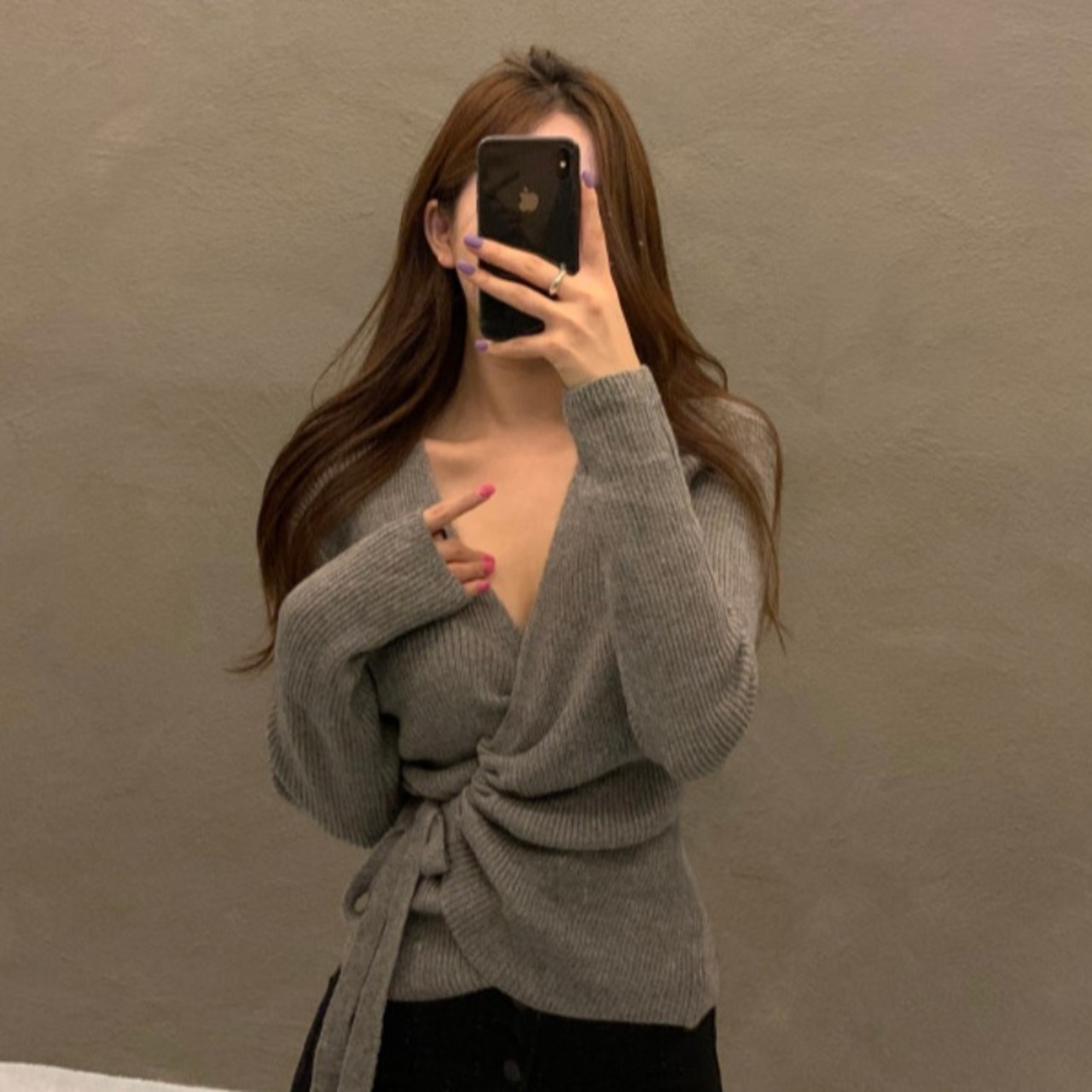 オータムVネックギャザーウェストスリムセーター レディース ロング 秋物 ICC_レディース5614487809
