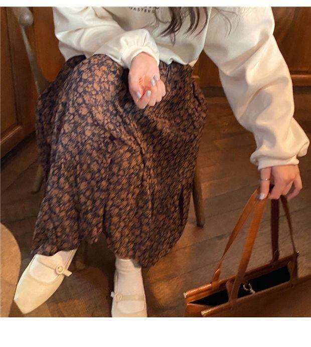スプリングオータムスカート ハイウェストウェストフローラル 大人ガーリー スウィート キュート カジュアル 春物 秋物 花柄 フラワーデザイン 左左右右86498059336