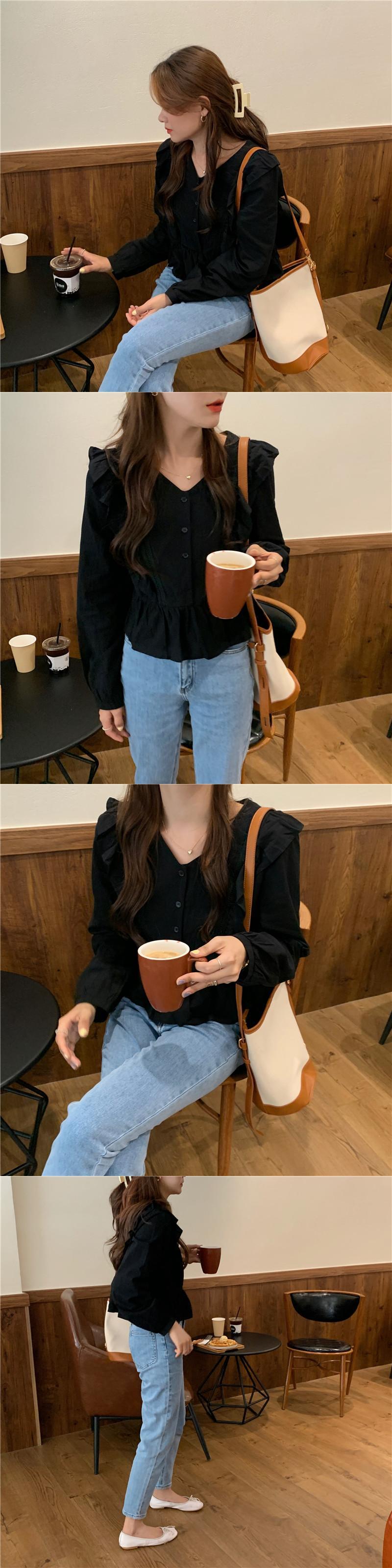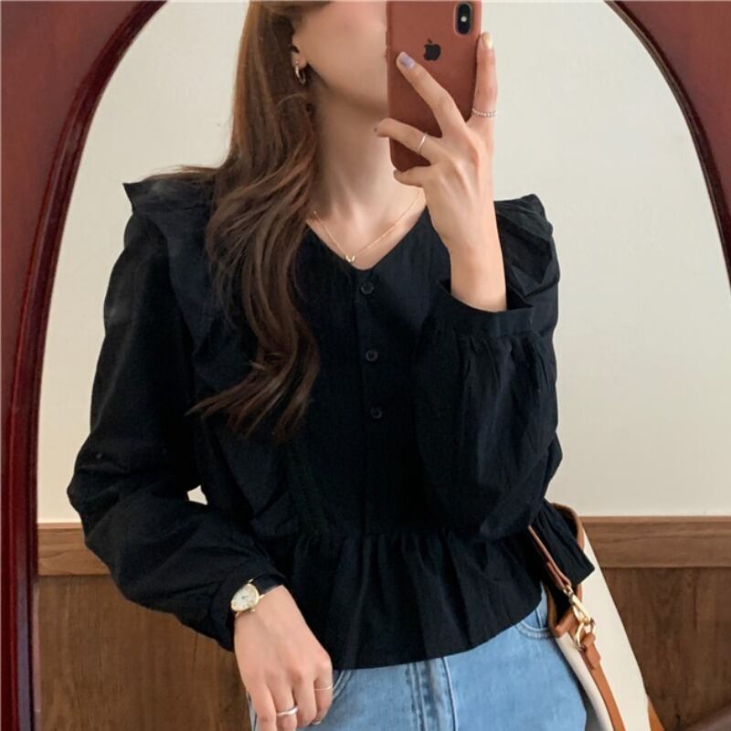 スタンダードスタイルシャツ スプリングオータムルーズVネックブラウス レディース ロング レトロ 春物 秋物 ICC_レディース16365951443