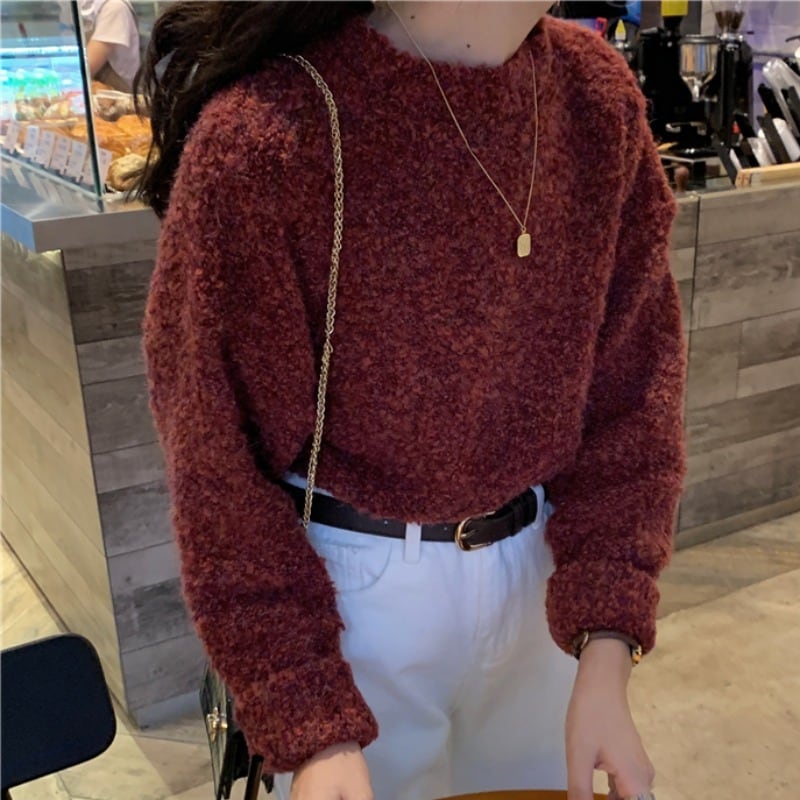 オータムウィンタースタイルラウンドネックルーズカラーウールプルオーバー 長袖スリーブニットセーター レディース ロング 秋物 冬物 Oネック ICC_レディース94681864609