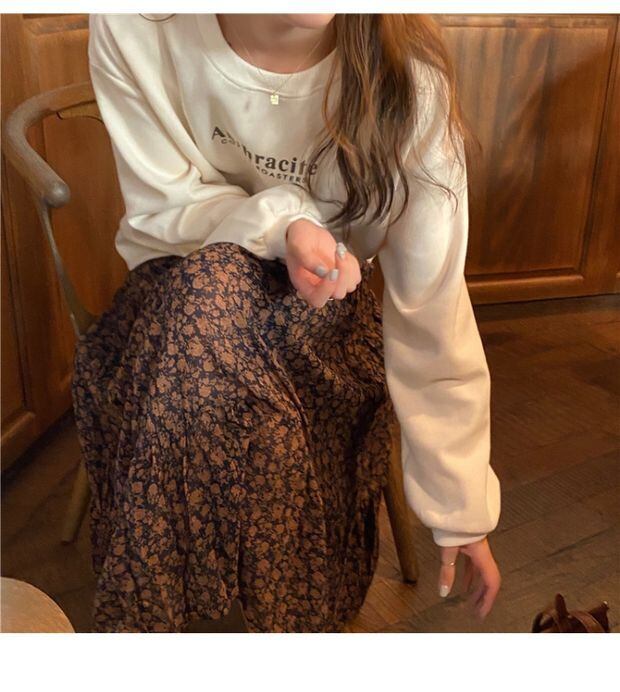 オータムシャツ 薄手ラウンドネックセーター ロング かわいい 秋物 Oネック 左左右右84038503897