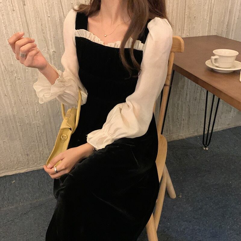 カラーウェストベルベットスリーブドレス スクウェア ステッチ ICC_レディース42792653279