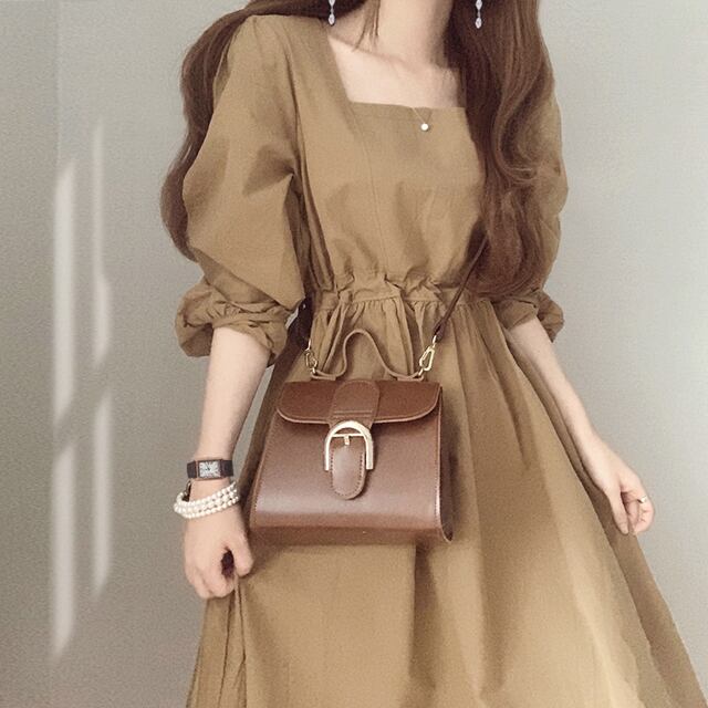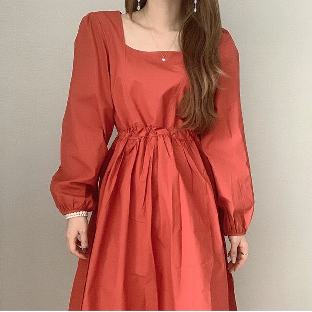 オータムスタイルカラーウェストドレス ロング 秋物 スクウェア ICC_レディース83562969312