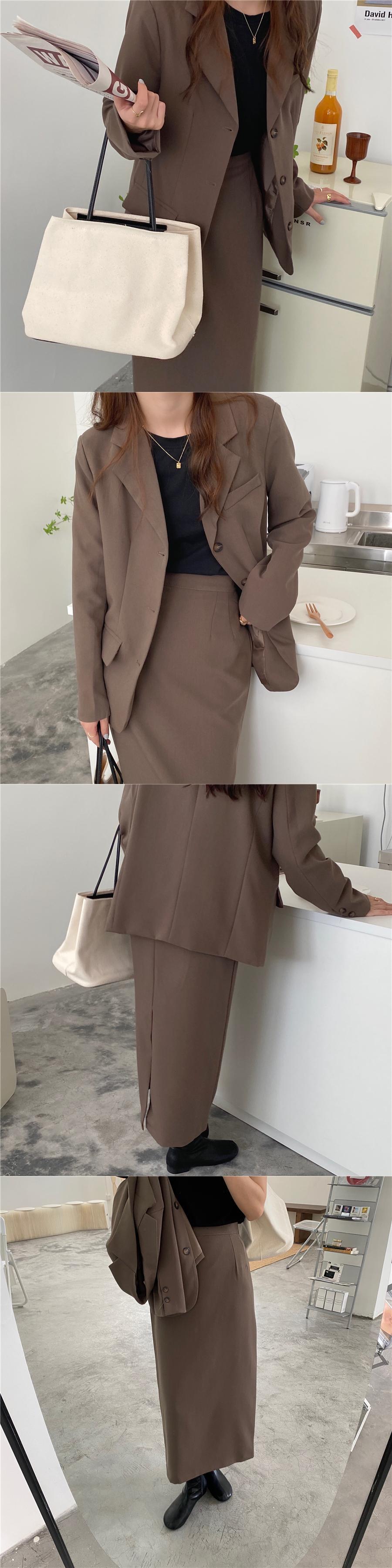 サイズ:コーヒーカラージャケットフリーサイズ,黒ジャケットフリーサイズ,コーヒーカラースカートS,コーヒー色のスカートM,黒スカートS,黒スカートM