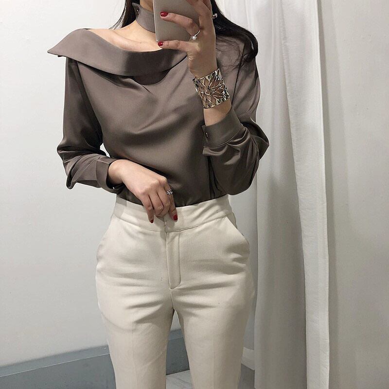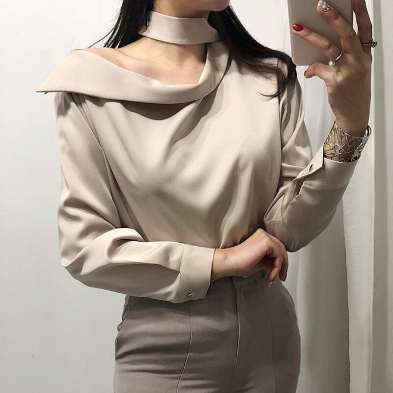 ストラップレスルーズカラー長袖スリーブシャツ トップス レディース ロング エレガント ピュア ICC_レディース60945231801