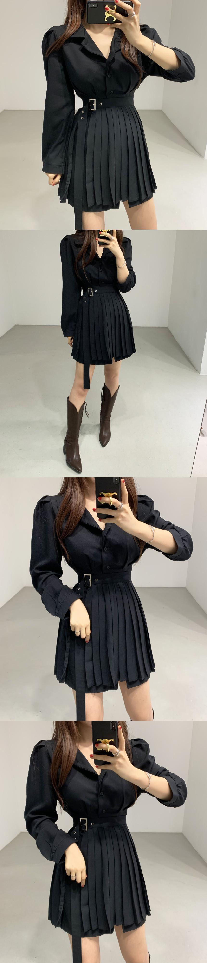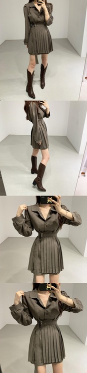 オータムスタイルシャツ ドレス ハイウェストウェストレースプリーツスカート レディース 秋物 ICC_レディース16369553454