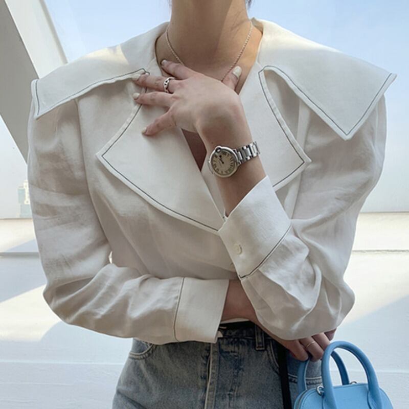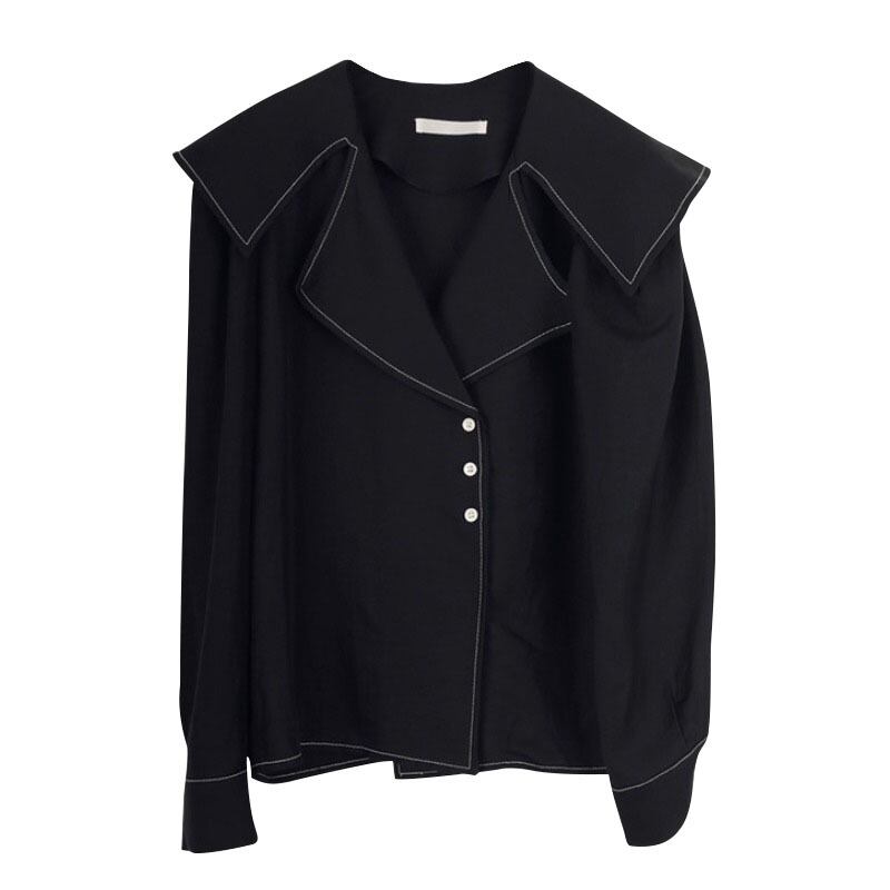 スタンダードトップス ラインブラックホワイトルーズシャツ レディース ロング レトロ ICC_レディース96549225041