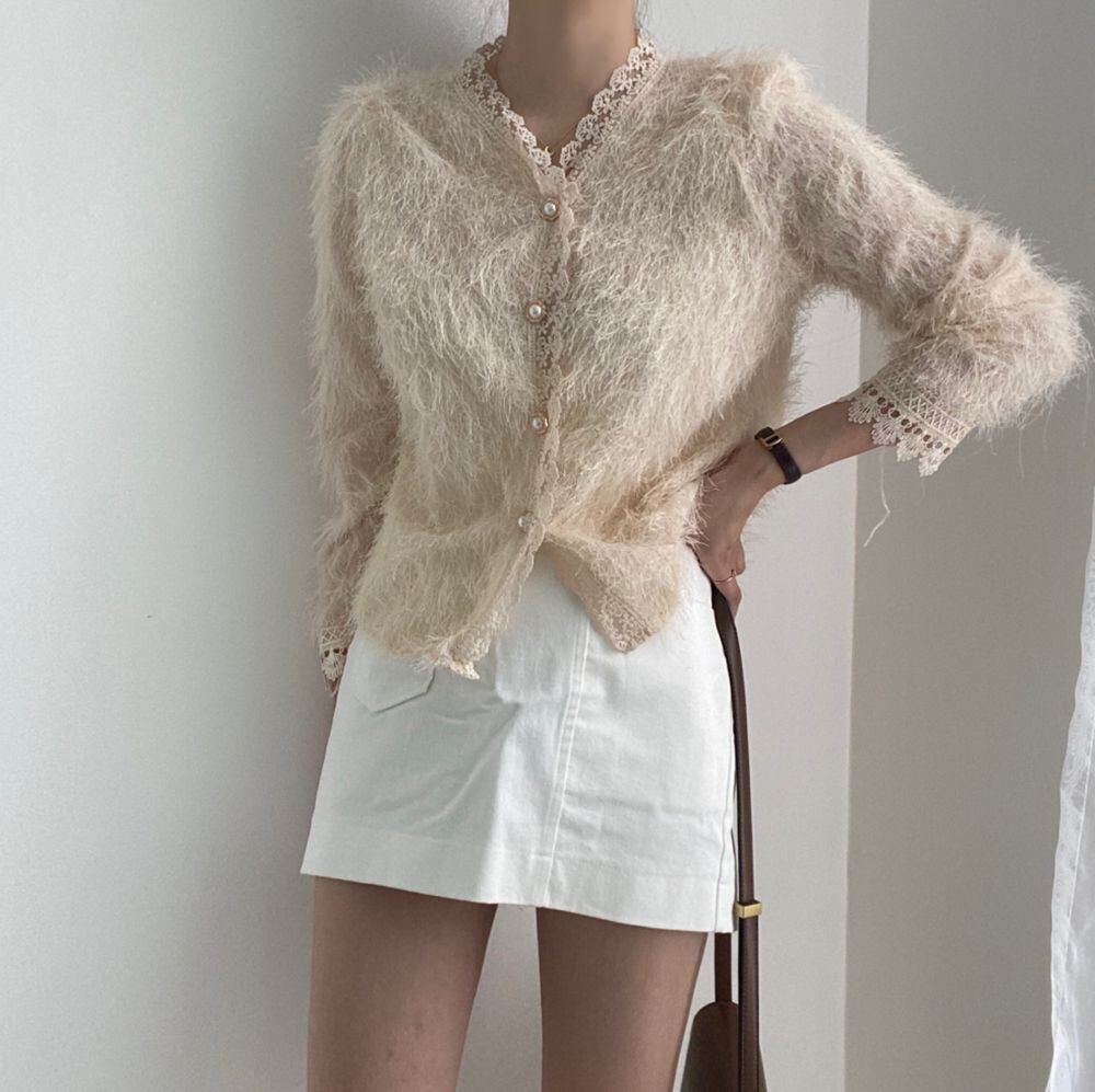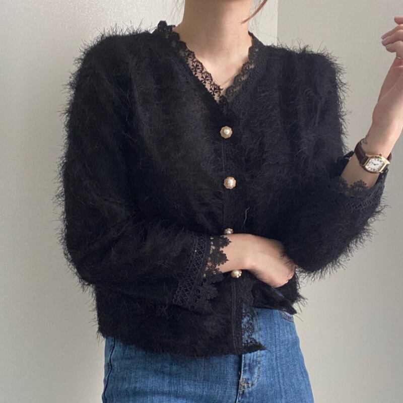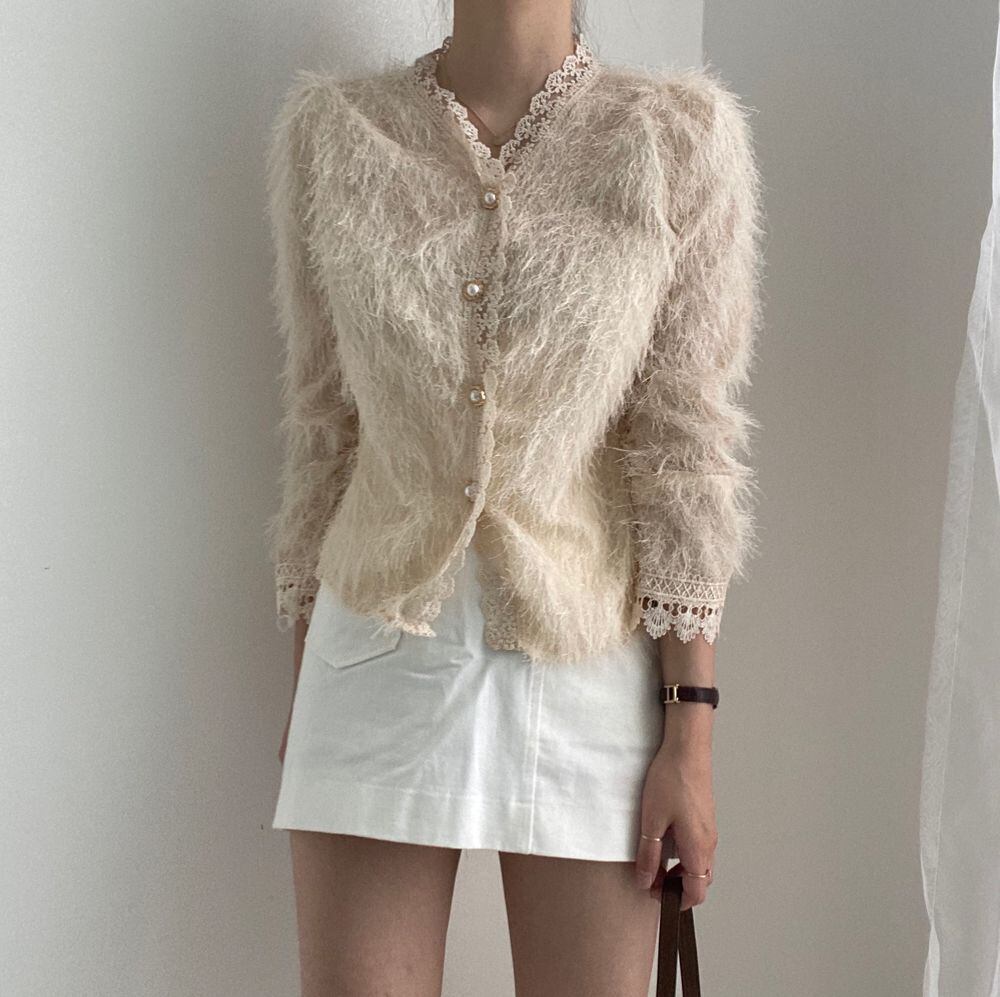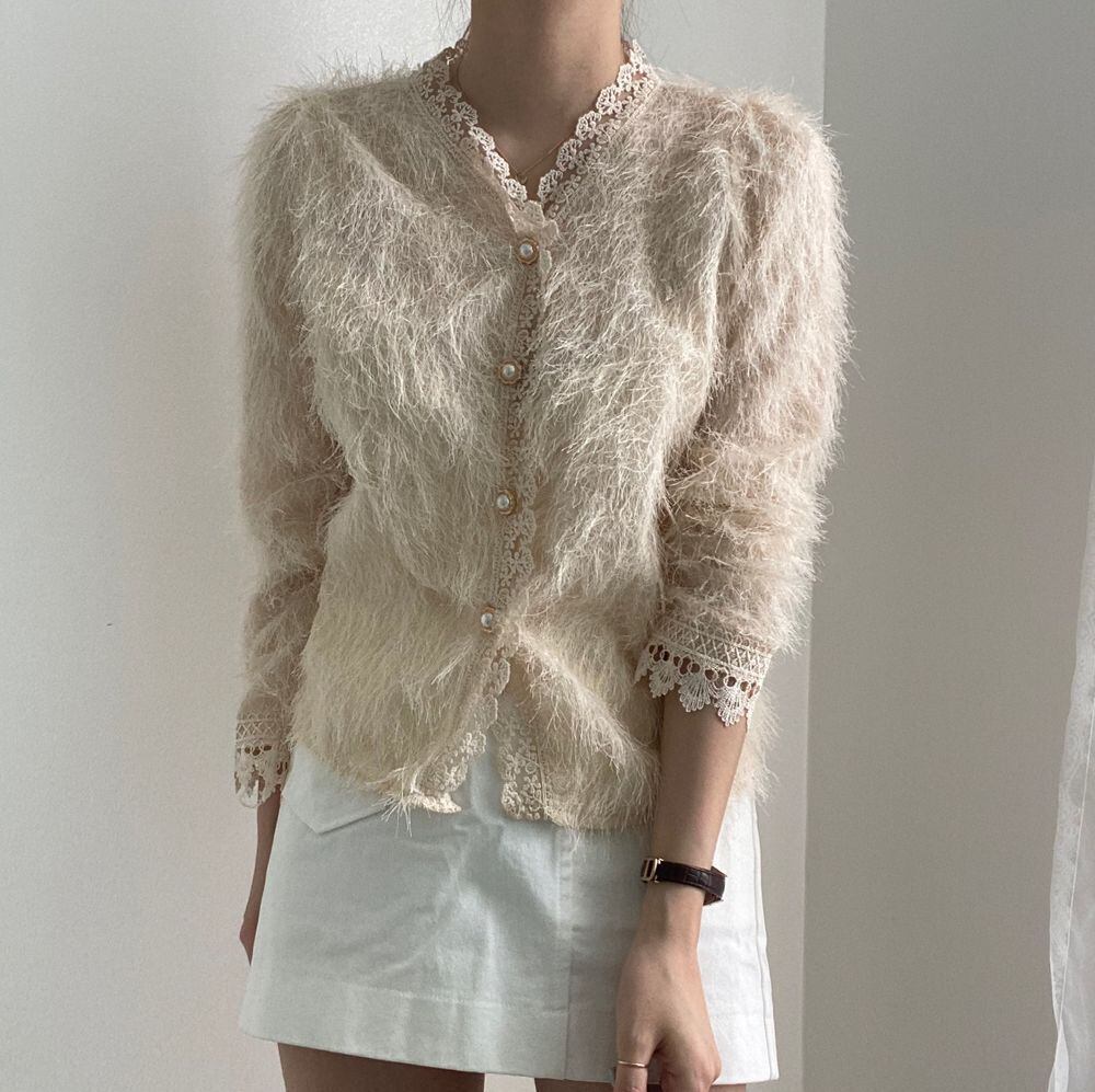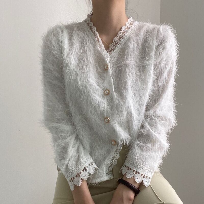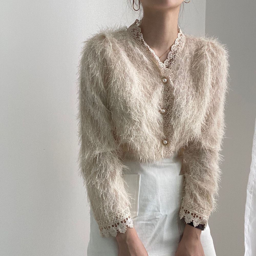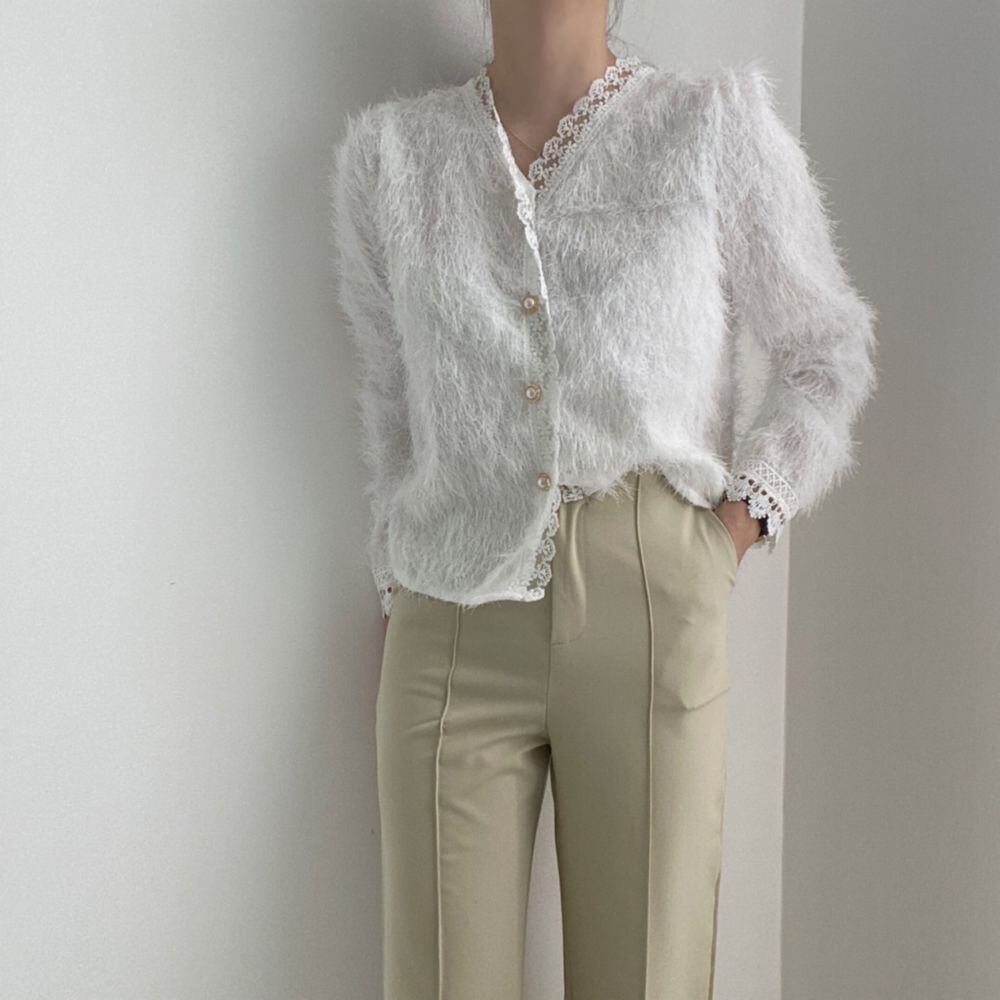 オータムスタイルVネックレースシャツ ロング エレガント 秋物 ステッチ ICC_レディース41306704110