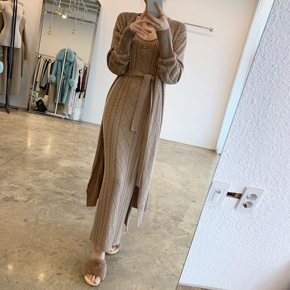 オータムウィンターパターンロングカーディガンセーター ニットドレス 秋物 冬物 ICC_レディース56016650656
