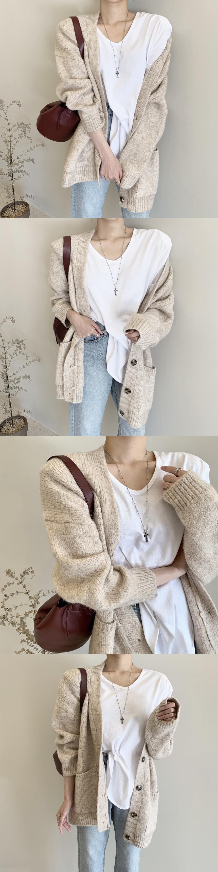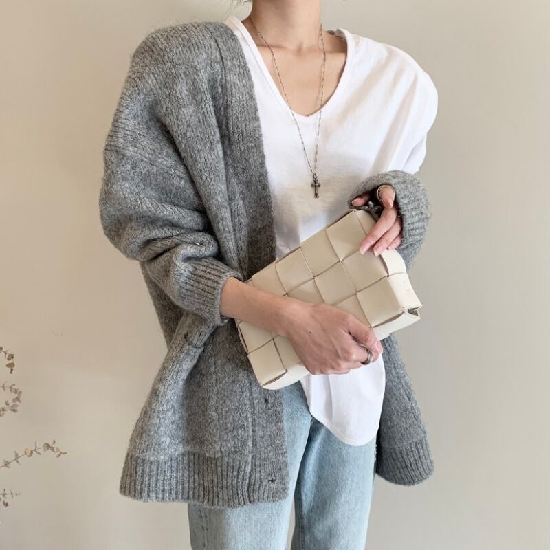 オータムウィンターVネックルーズカラーラインカーディガンセーター ジャケット レディース 秋物 冬物 ピュア ICC_レディース46692578981