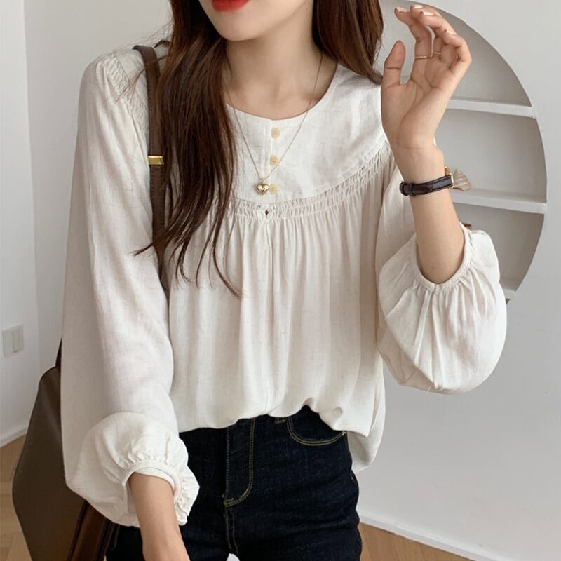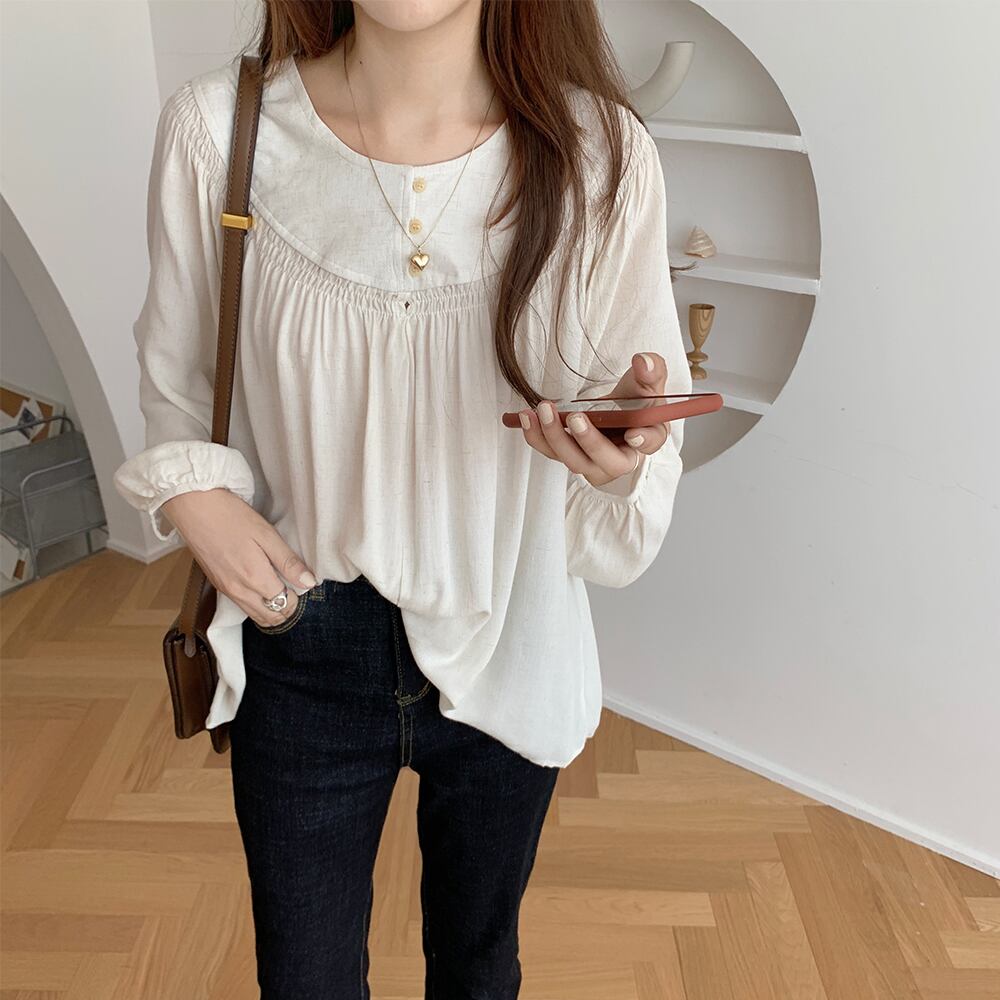 オータムバックルスリーブルーズシャツ レディース ランタンスリーブ コットン 秋物 ICC_レディース11224256463
