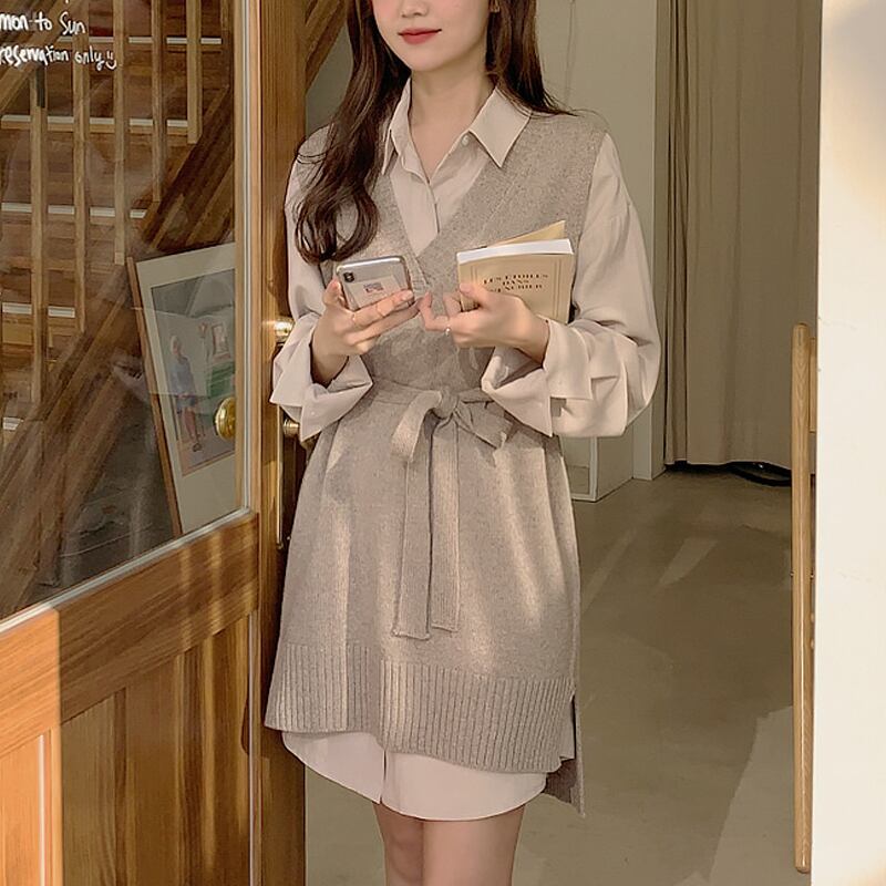 オータムウィンターVネックニットウェストセーター 秋物 冬物 左左右右67398190058