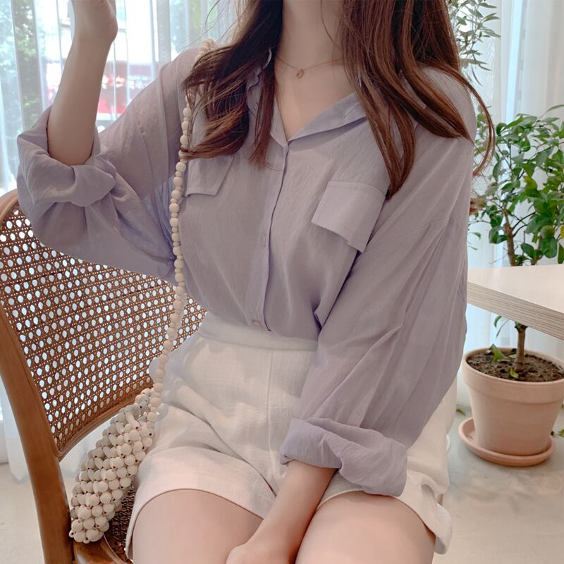 オータムスタンダードカーディガンルーズ薄手シャツ ロング レッド レトロ 秋物 パープル 左左右右3812515