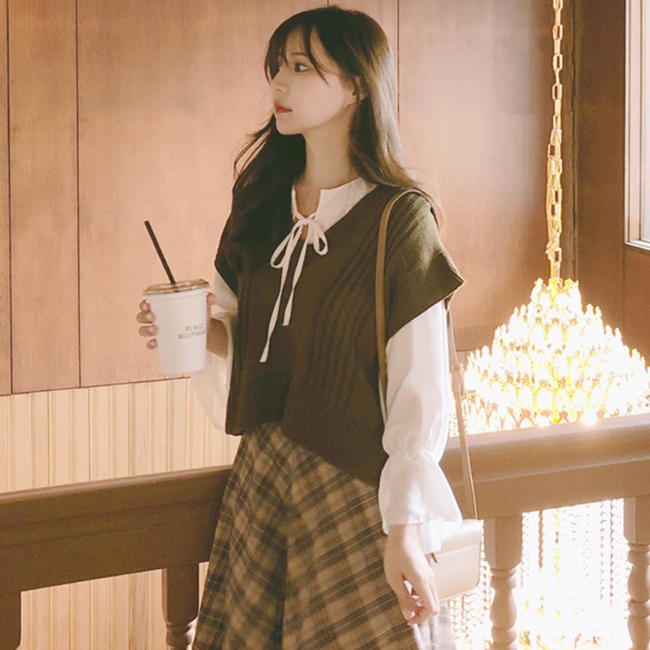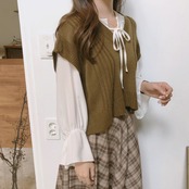 スプリングオータムスタンダードVネックニット レトロ 春物 秋物 左左右右6999368